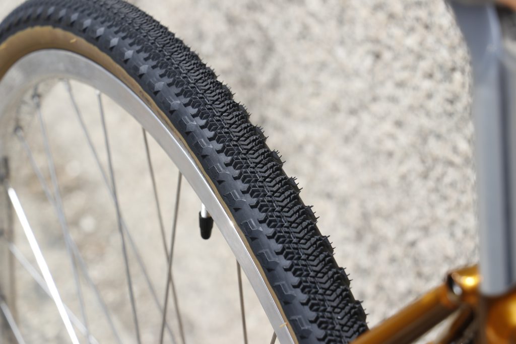タイヤには縦方向に密集したセンタートレッドパターンによりオンロードの転がりも軽いグラベルタイヤ、TERAVAIL Cannonball 700×35Cをチョイス。