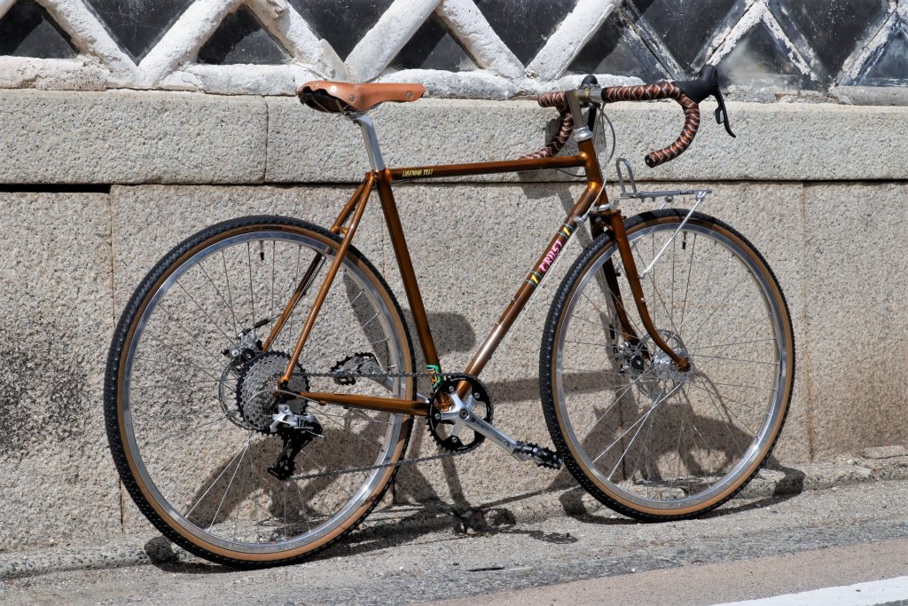 ドロップハンドル&SRAM RIVAL1x11SPEEDコンポをベースに700x35Cタイヤを採用した、「オンロード~キレイな砂利道メインのツーリングバイク」に適した仕様として組み立てさせて頂きました。