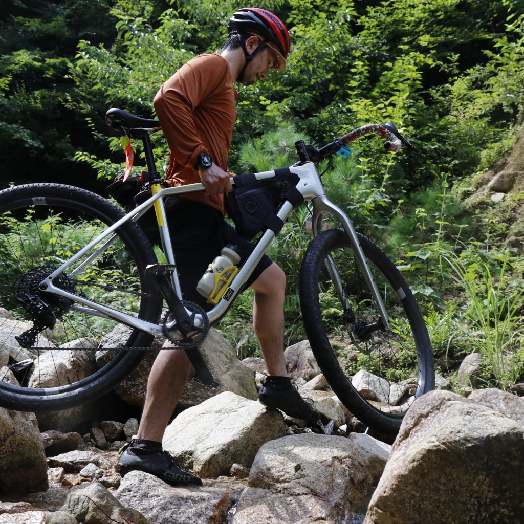フルカーボンフレームさながら通常のグラベルバイク同様ドロップハンドルによる上半身を活かしたパワフルな走りに加え、通常のグラベルバイクでは成しえないMTB基準の29ERタイヤによる走破性は、