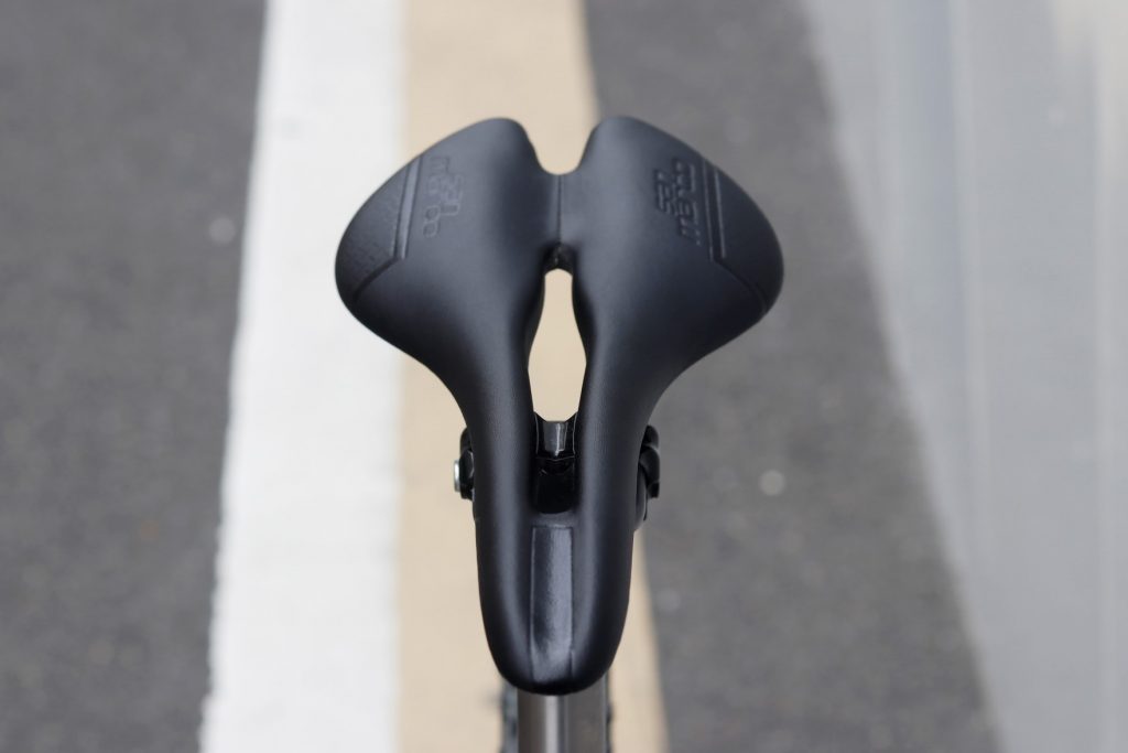 ワイド幅といっても142mmですので通常のレーシングサドルと遜色ない幅感で車体にカッコよく決まります。