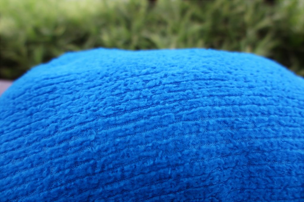 羽毛のように軽くて暖かい保温性を持ちつつも繊維自体が『水を含まない』という性質を持つ超微細マイクロファイバー素材を、メッシュ生地に直接&高低差を生みながら編み込む事で 大幅に空気の層を生み圧倒的な保温力と、大幅な軽量性を寄与。