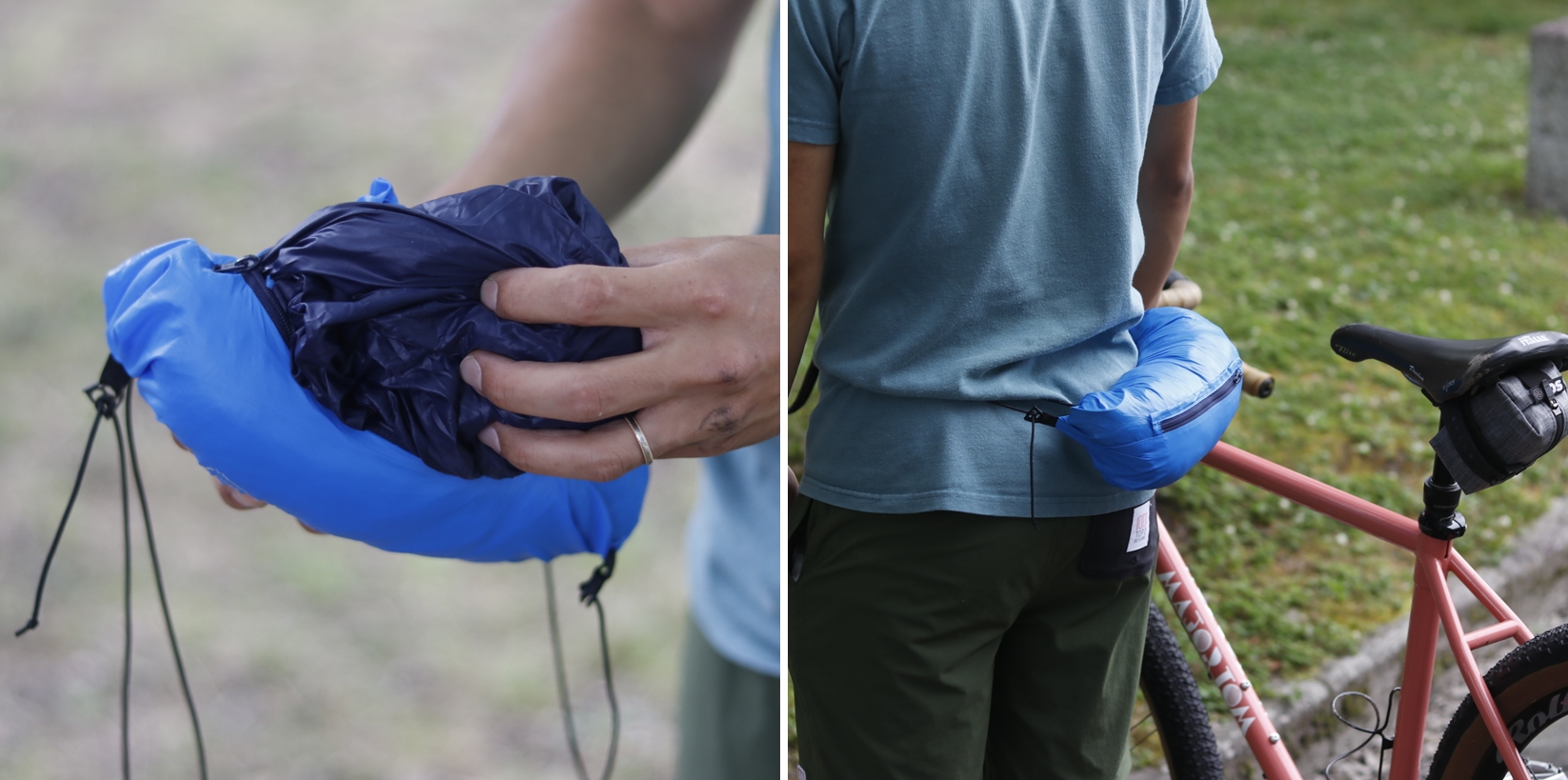 登りと下りで体感温度が大きく異なり、就寝時の冷え込みも考えるキャンプライド・バイクパッキングとの相性抜群です◎