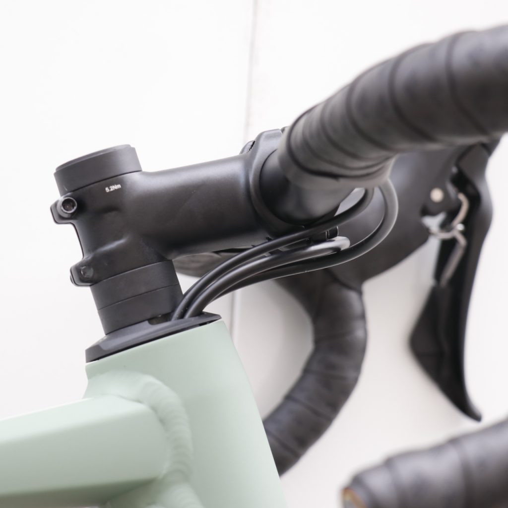 リーチを伸ばしているのでステムはちょっと短めに、ヘッドを寝かせているのでステアリングはややゆったりします。