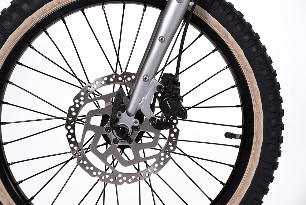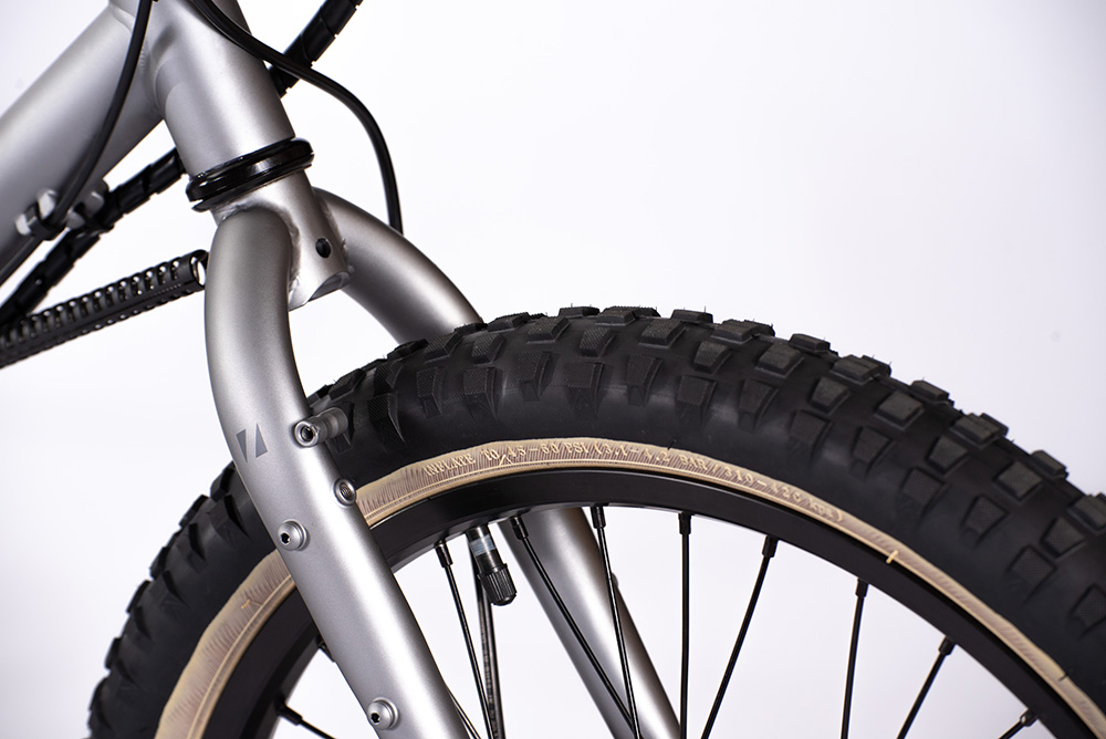 クロモリフレーム&小径ながらもブロックタイヤを配した、アウトドアフィールド誘うヘビーデューティ感溢れる武骨さ感じるこの佇まい。