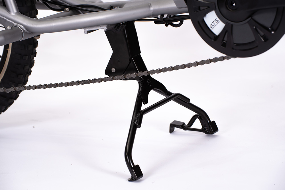 バイク、ライダー、荷物を含めてなんと合計210kgの重さを受け止める頑丈なクロモリフレームがベースとなっております。