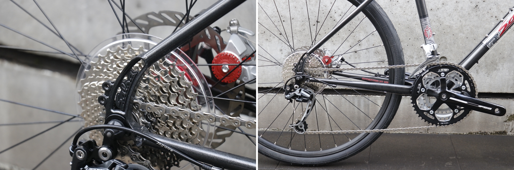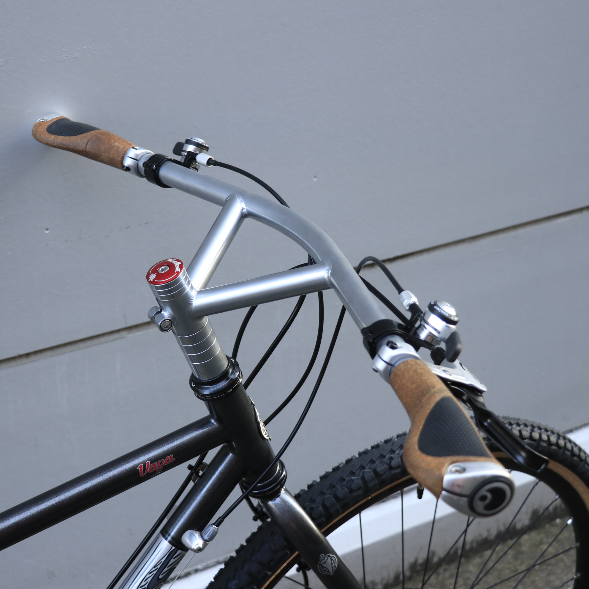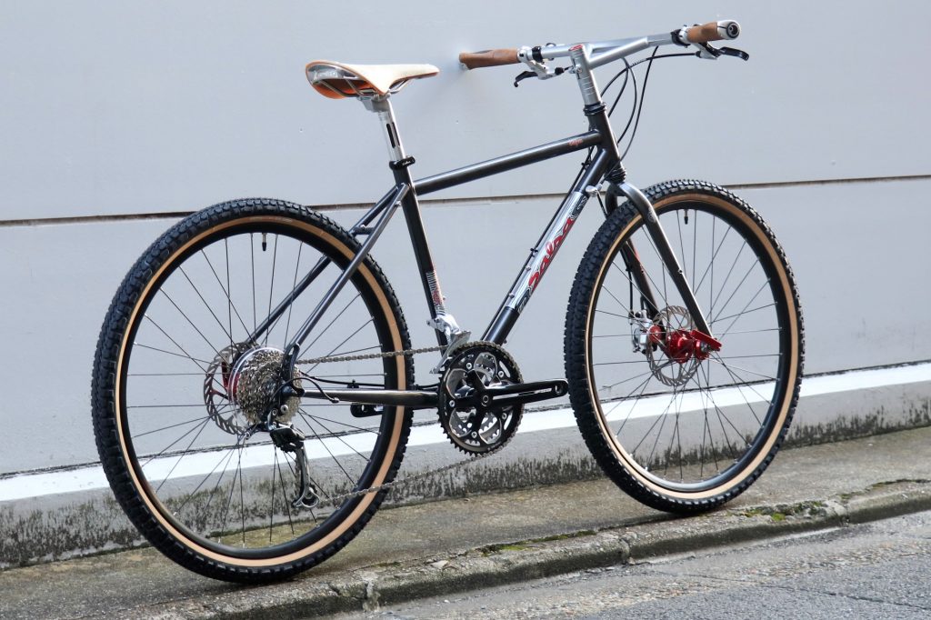 今回は26インチホイール&タイヤ、クロモリフレーム&フォークというベースを活かして、普段使い~砂利道/林道ライドにも使いやすく、女性の方でも気軽に乗れる「フラットハンドル/グラベル ツーリング仕様」にカスタムしてみました。