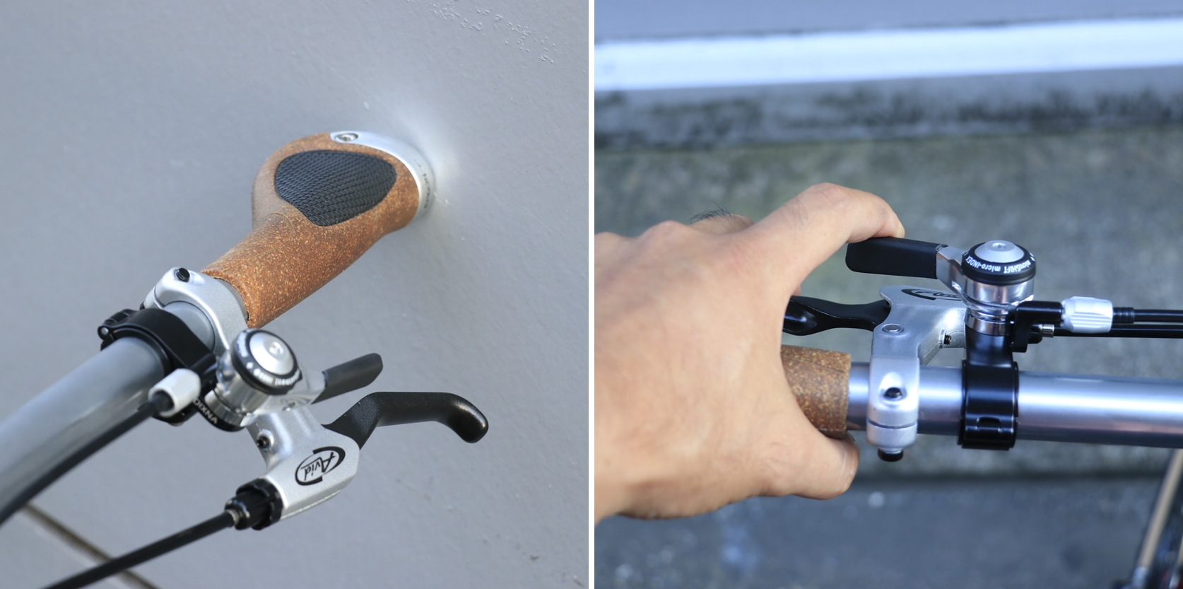 パチパチとシンプルな操作感がとても心地よいマイクロシフト製レバーも手元で簡単に操作できます。