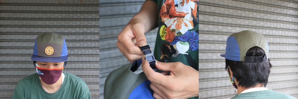 ソフトで浅めのかぶり心地のコットン100%の5パネルキャップ。アクセントになる刺繍パッチとサイズ調整に便利なアジャスターつき。