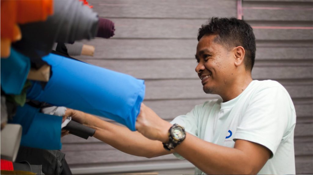 コトパクシの各アイテムは、パタゴニアなど他社アウトドアブランドの製造過程で生まれる”廃棄残布”などをメイン素材とし、発展途上国のフェアトレード認定工場で作られます。