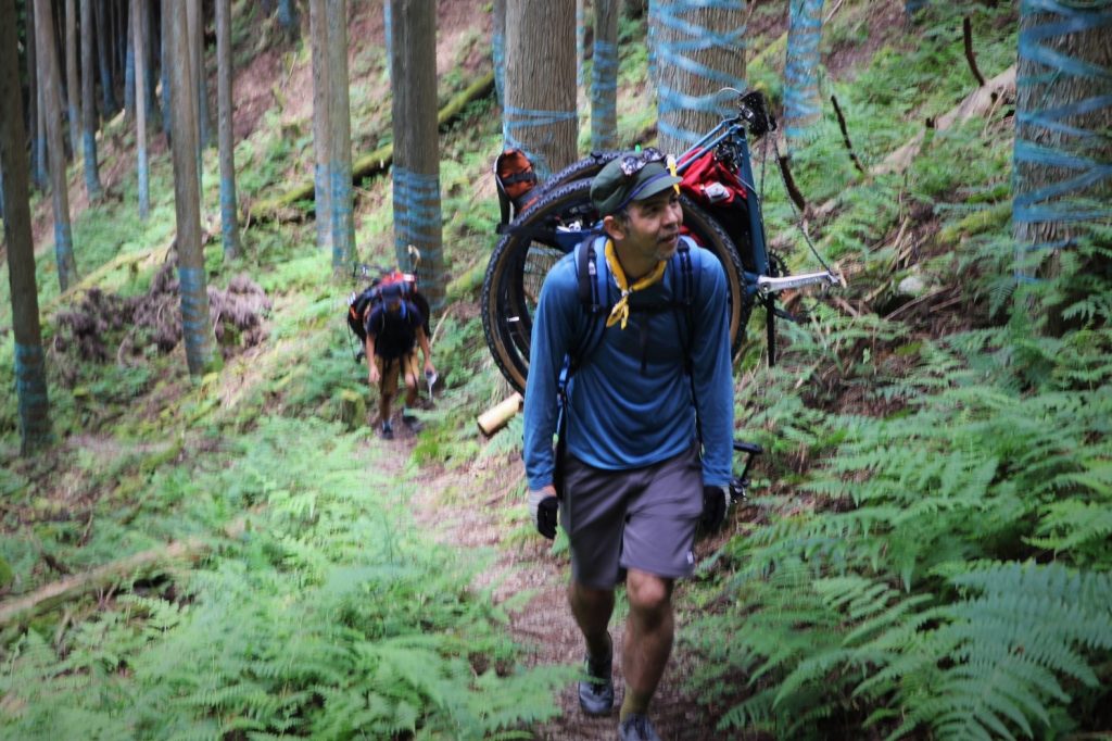 以前よりチョコチョコやっている(以前の模様はコチラ)、”自転車を背負って山を登る”というコンテンツが含まれるこの遊び。