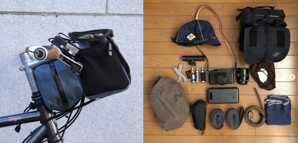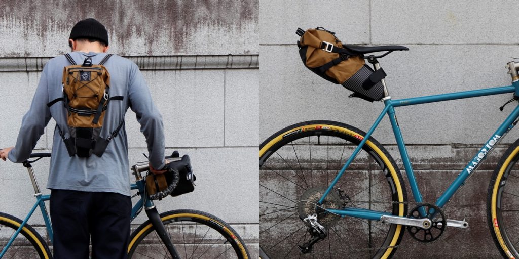 従来のように重たい金属のキャリアを使うことなく、バッグ自体を直接自転車に取付ける事で軽量化を図りライダーの負担を軽減するツーリングスタイル「バイクパッキング」