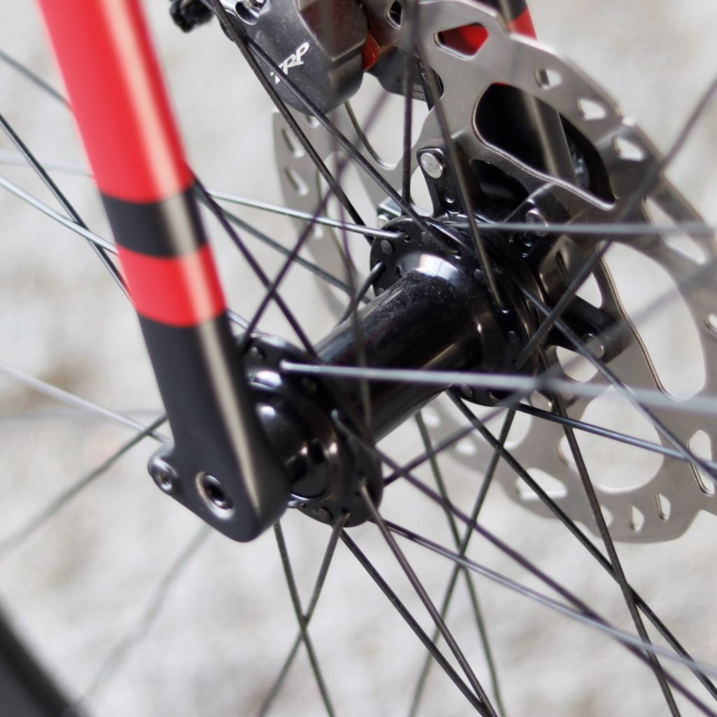 油圧ディスクブレーキの高いストッピングパワーによりハブ軸がエンドからずれる事もなく、また太い車軸によりダンシング時やコーナリングによるよじれを抑制しスムーズなホイールの回転~走行感を与えます。