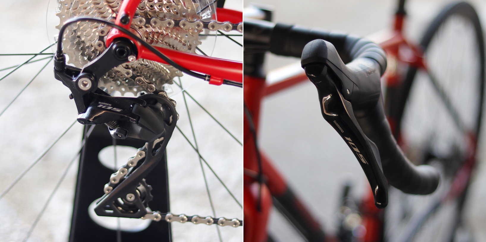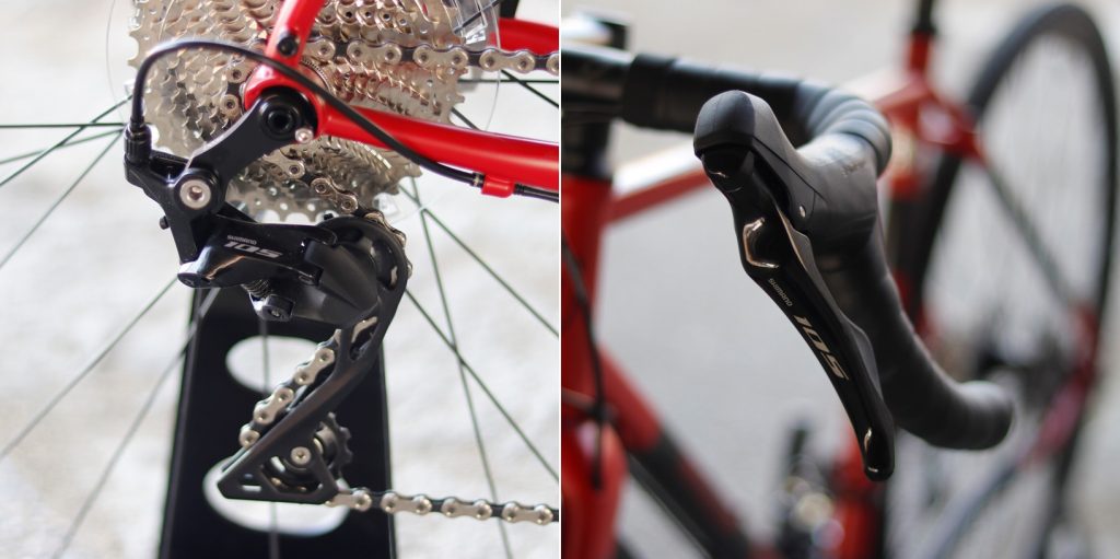 メインコンポーネントは、コストパフォーマンスと高テクノロジーを併せ持つ安心の「SHIMANO 105」をベースとした、 2x11SPEED。