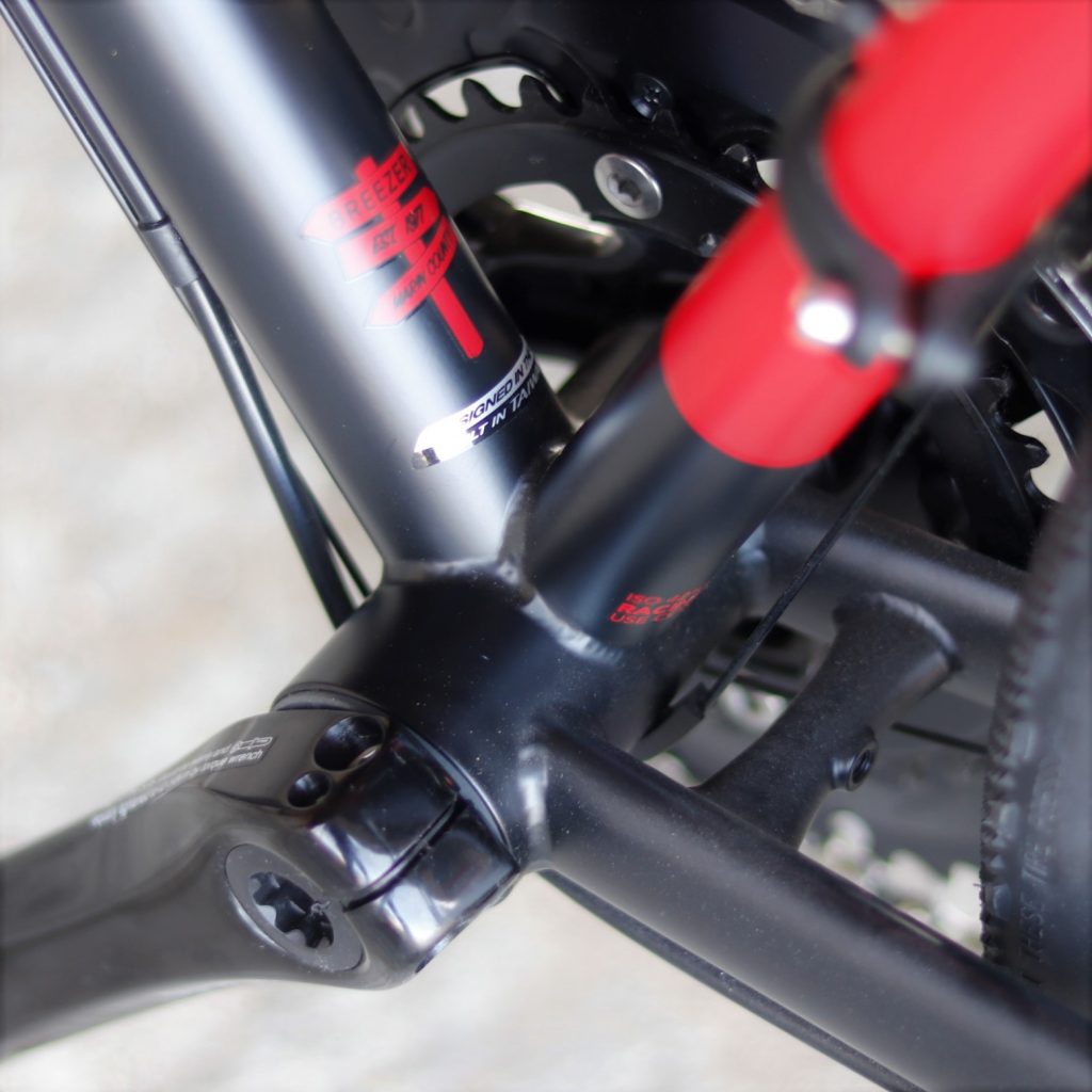 BBドロップは78mm(フレームサイズ450時)と実に低重心な設計。*通常のロードバイクなら65~70mm程です。