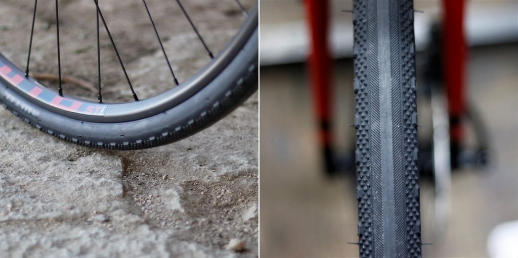 トップ面をスリック&サイドをノブの低いブロックパターンとし、アスファルト面での転がりの軽さとグラベルの走破性を併せ持つWTB BYWAY 700x34Cが標準採用。