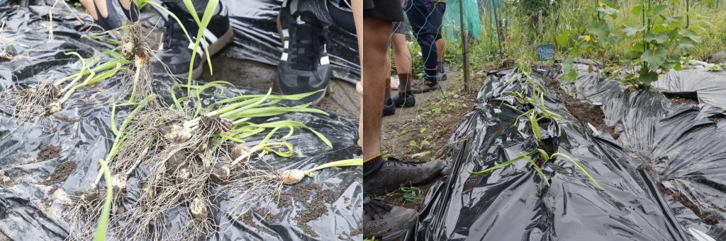 メキメキと農業知識を増やし続けるイイくん指導のもと、まずは順調に根を伸ばすニンニクの植え替えから。