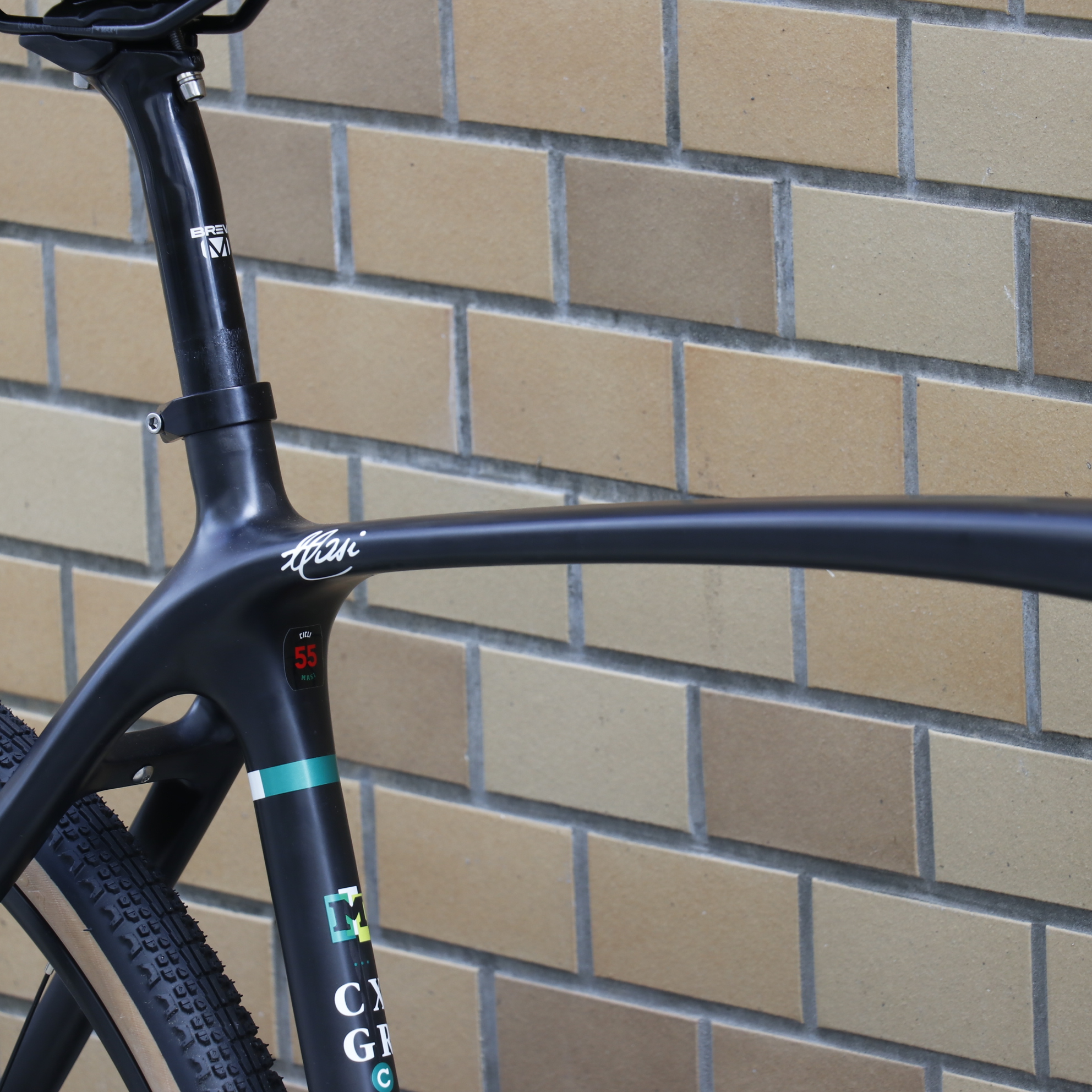 ジオメトリーはロードバイクに近づけた加速/安定性をバランス良く取り入れたもの。グラベルツーリングよりも加速性を持ち、シクロクロスより安定感に優れたジオメトリーに反応の良いカーボンフレームの要素が加わる事で非常に使い勝手の良いバイクになってくれております。