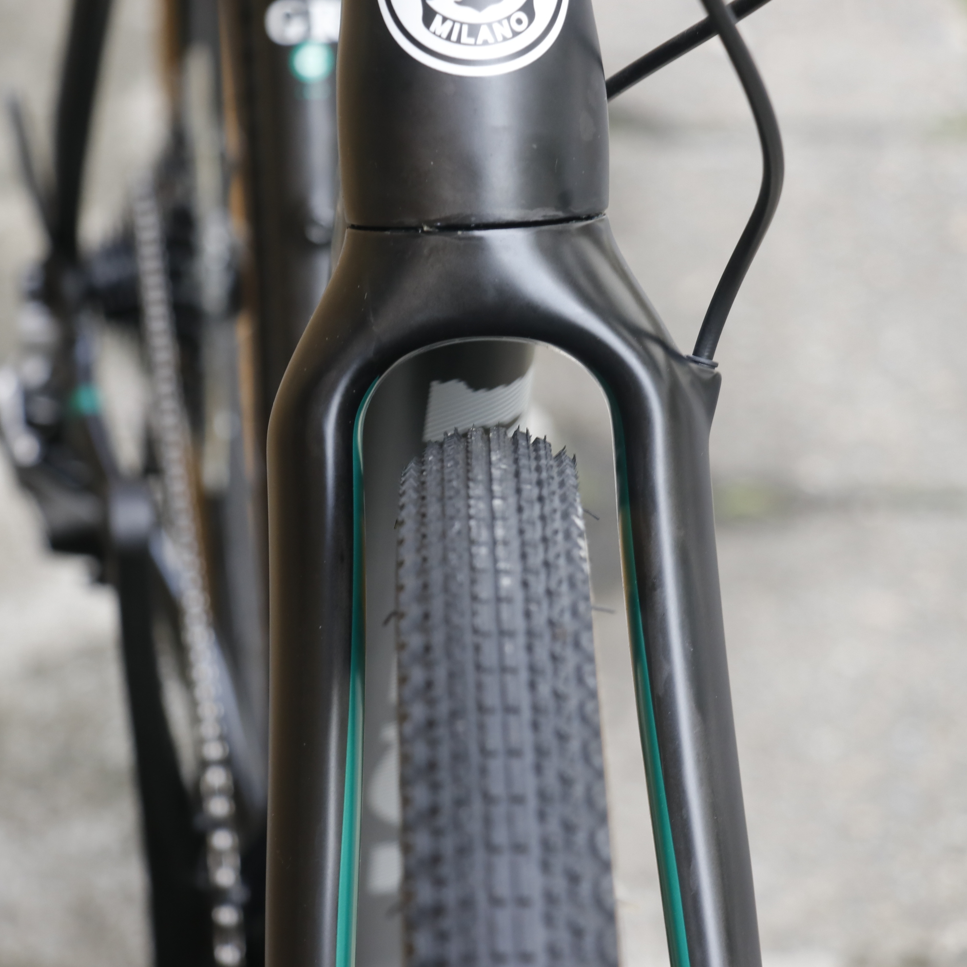 なお、700x40cのタイヤクリアランスはご覧の通り。広過ぎず・狭すぎずで、CXRCと同じようにタイヤを細くするカスタムもバッチリ似合います。