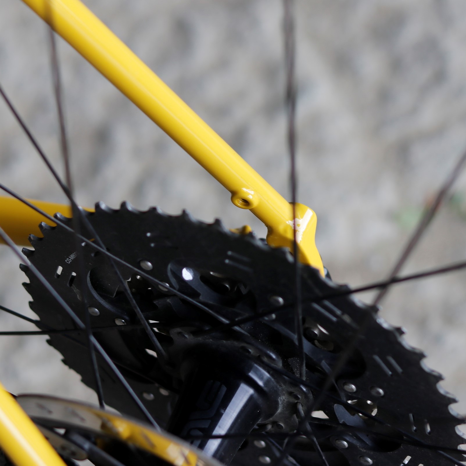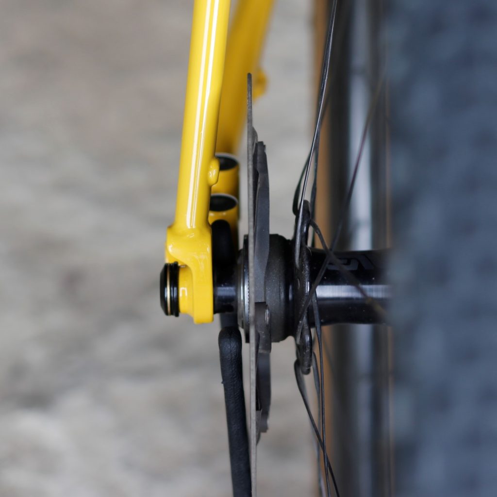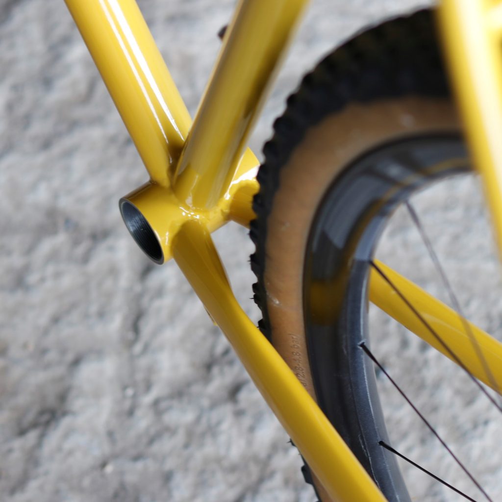 タイヤクリアランスは、路面荒れがちな林道~トレイルへのアプローチが多くなる国内使用想定のもと、ロードクランク(50x34T)の併用可能ながらも最大700x50C / 27.5×2.0インチを確保。