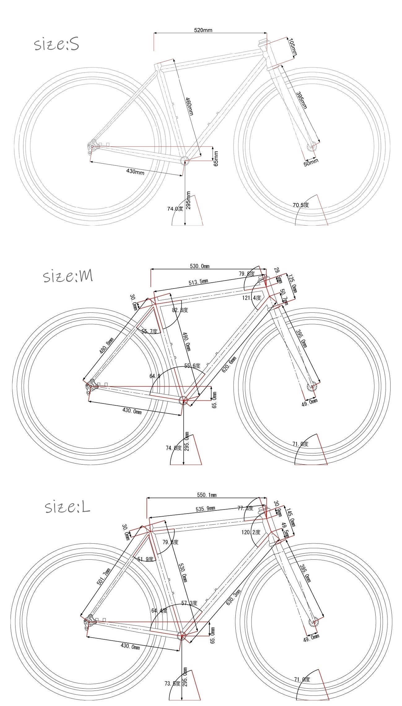 *適応身長においては、お好みの組み方/ホイール径/ご使用用途などで前後します。詳しくはご相談下さいませ。