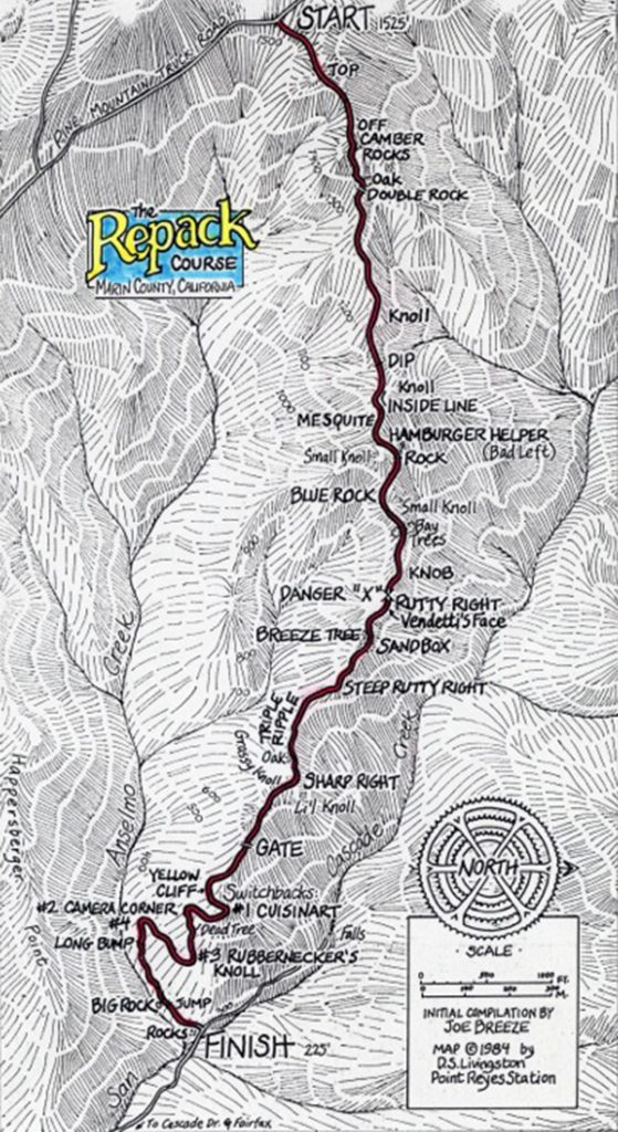 史上初のオフロードダウンヒルレース「REPACK」が、そのマリン群で1976年10月21日に開催される。10人のヒッピーライダーが参加し、全員が「klunkers(クランカー)」と呼ばれる1930年-40年代製のSCHWINNを改造した車体を使用し、翌年にはそのコミュニティの中で唯一溶接技術をもっていたジョ―ブリーズが世界初となるオフロードレース用自転車「BREEZER」を設計~製作。これをそのREPACKレースで自らが最初に使用し、見事優勝。これこそが、MTBカルチャーの発端であります。