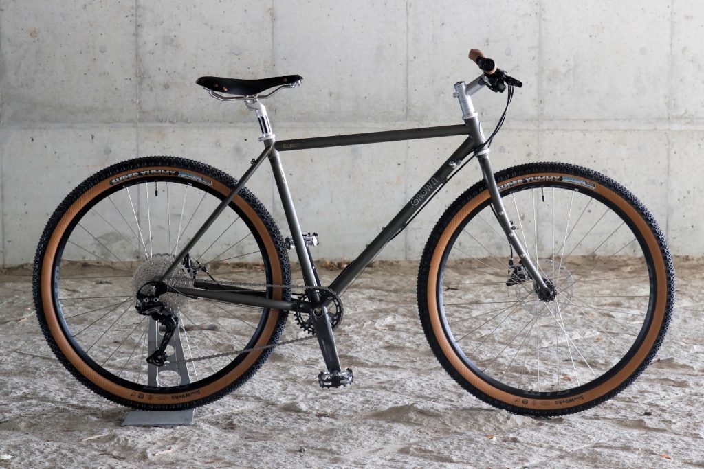 本モデルの最大タイヤクリアランスは27.5×2.3インチで設計していますが、ホイールを700Cにして組み上げたり、ドロップハンドル仕様でのアドベンチャー/ツーリングバイク/グラベルバイクのように組み上げたり、クロスバイクのように楽チンに組み上げたり。