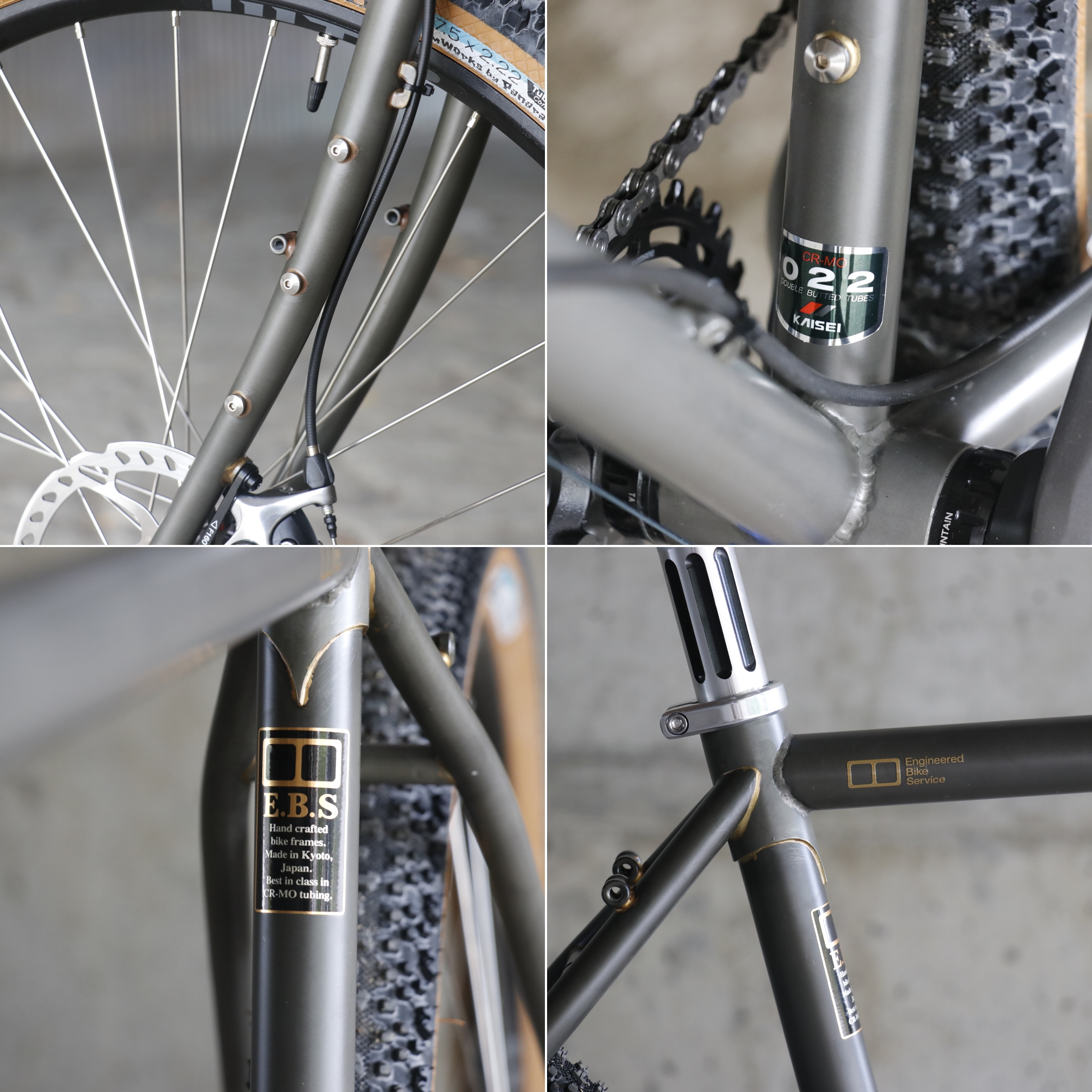 フレームの製作は京都に工房を構えるE.B.Sにてハンドメイドで製作され、国内で唯一ハイエンド自転車向けパイプを生産している福島県のKAISEI社製によるダブルバテッドチューブのスタンダード、丈夫さと軽量性のバランスに秀でた「022」が採用。