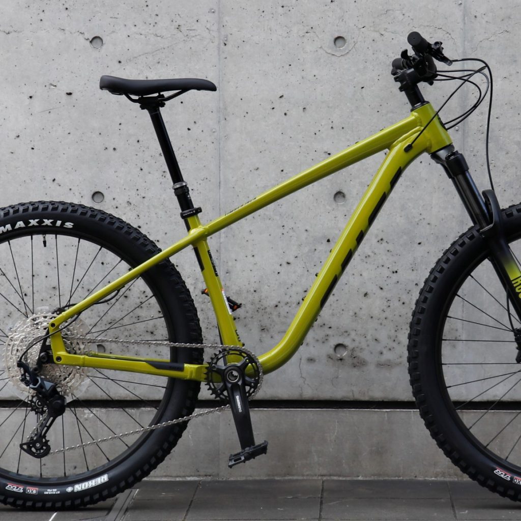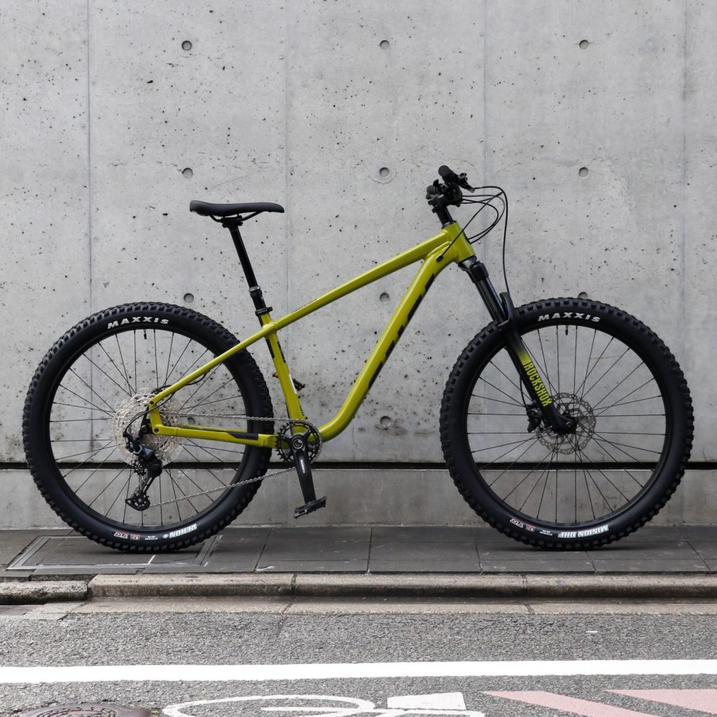 シンプルに今期採用された中間色のグリーンがバツグンにカッコイイ!入荷したてほやほやの「TIMBERJACK(ティンバージャック)SLX 27.5+ 2021モデル」。