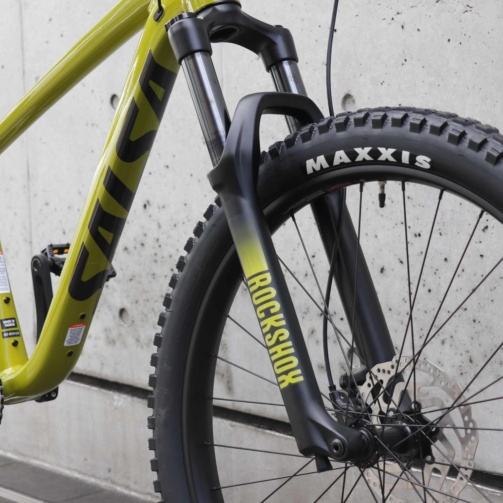 フロントフォークにはエアサスの「RockShox 35 Silver TK Air」。130mmストロークと下りのみに寄せていないのも◎。勿論ロックアウト機構仕様。