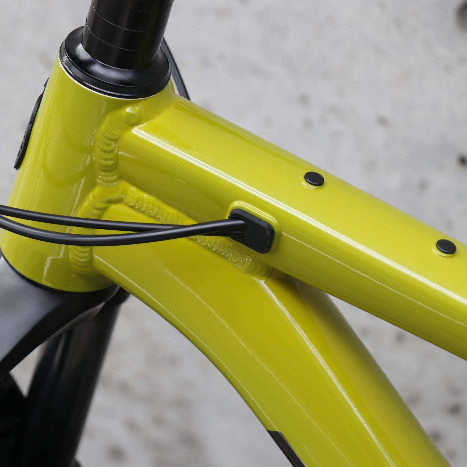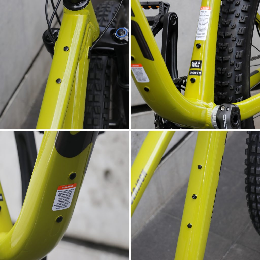 バイクパッキングツーリングには勿論、携帯ポンプやスペアチューブなどトレイルライドの必携アイテムの積載に役立つ、トップチューブ上、ダウンチューブ裏 ダウンチューブ上(3穴)、シートチューブ上と多くのアイレットを配備。
