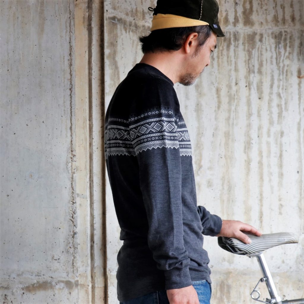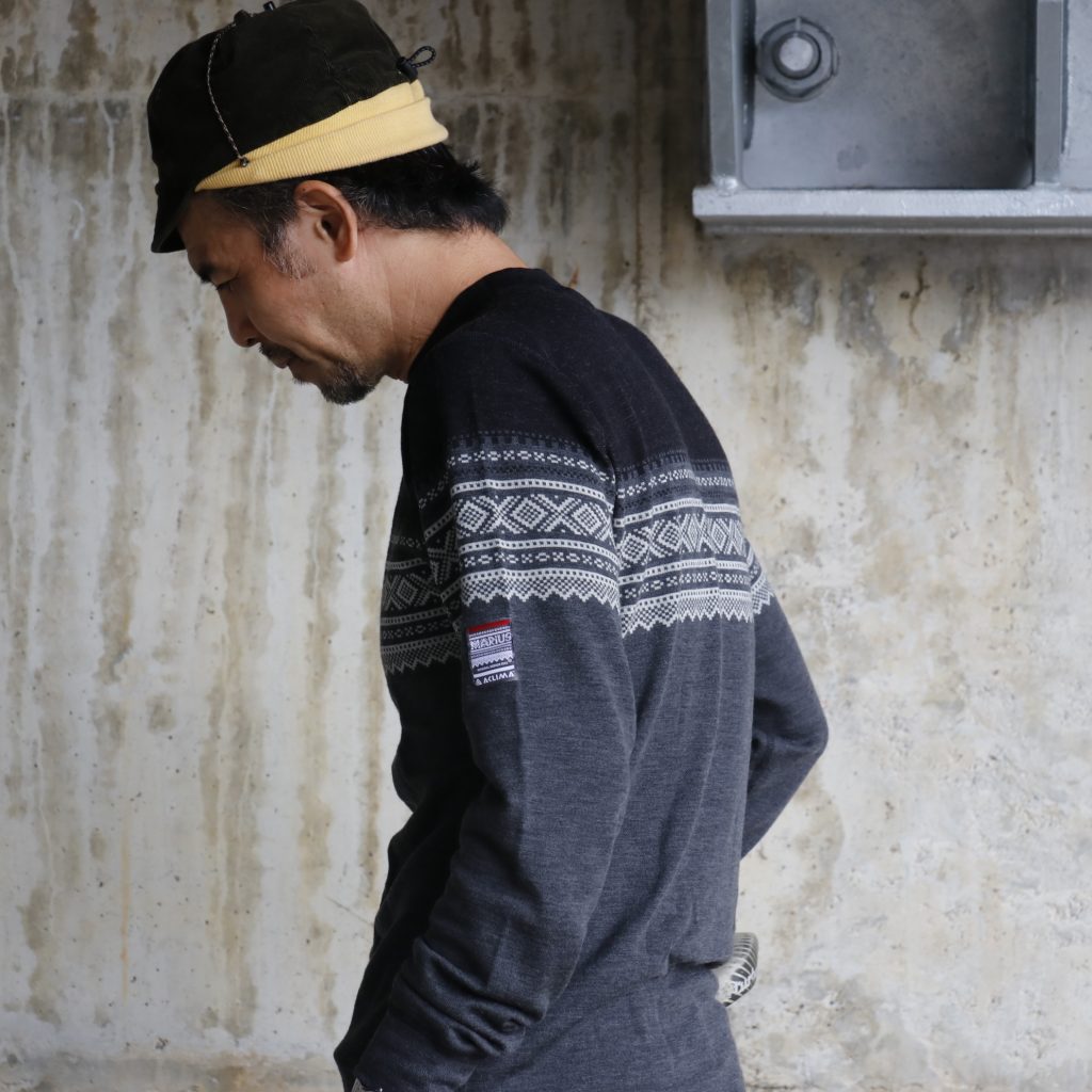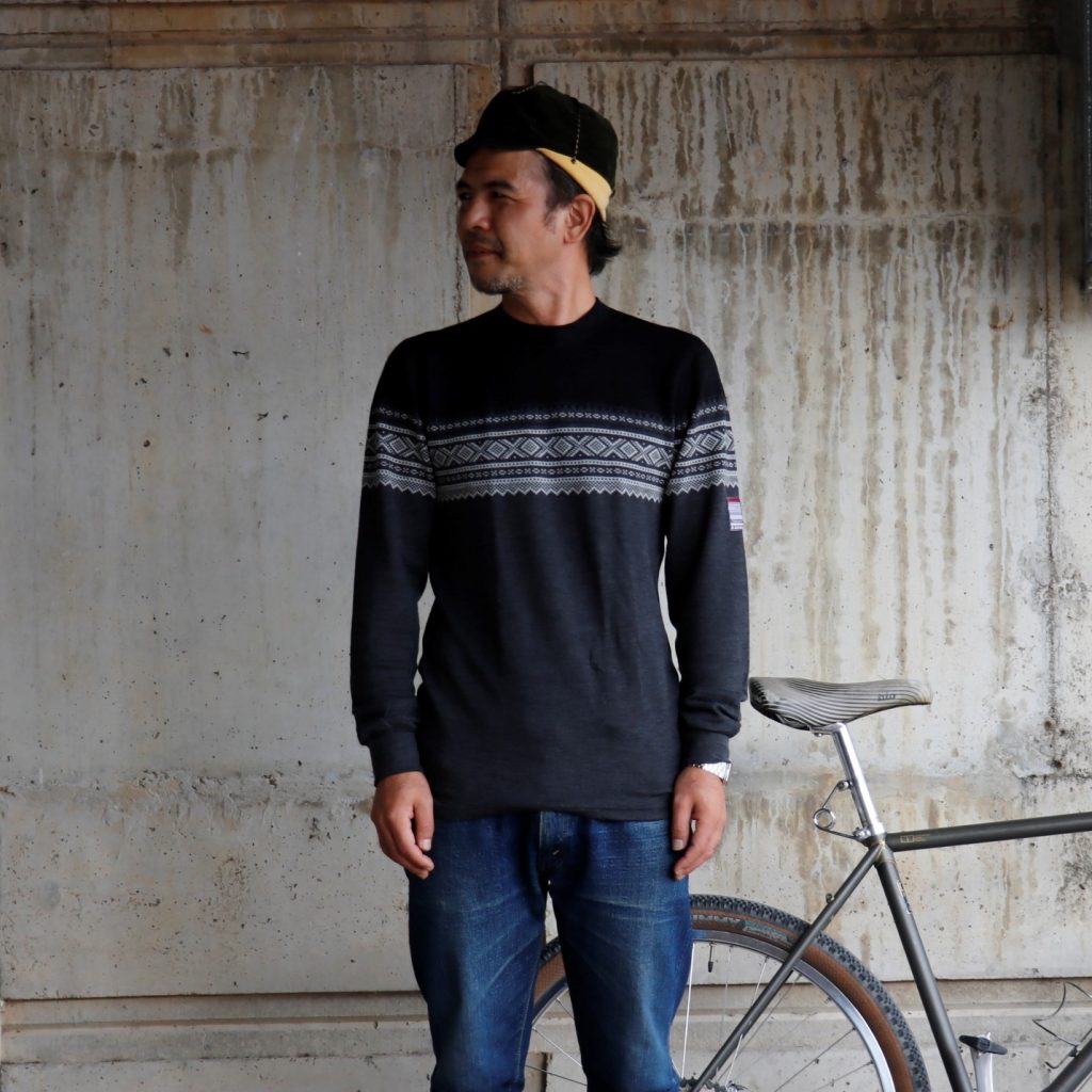 2021.11.07 BLOG , eirin丸太町店 , アパレル , ウェア , サイクルハテナ(eirin丸太町店別館)ノルウェー発。高品質メリノウール100%を使用する名 ブランド「アクリマ」から、雰囲気あるノルウェーの伝統的なハンドニット「マリウス」柄を施したクルーネックシャツが入荷してきました。