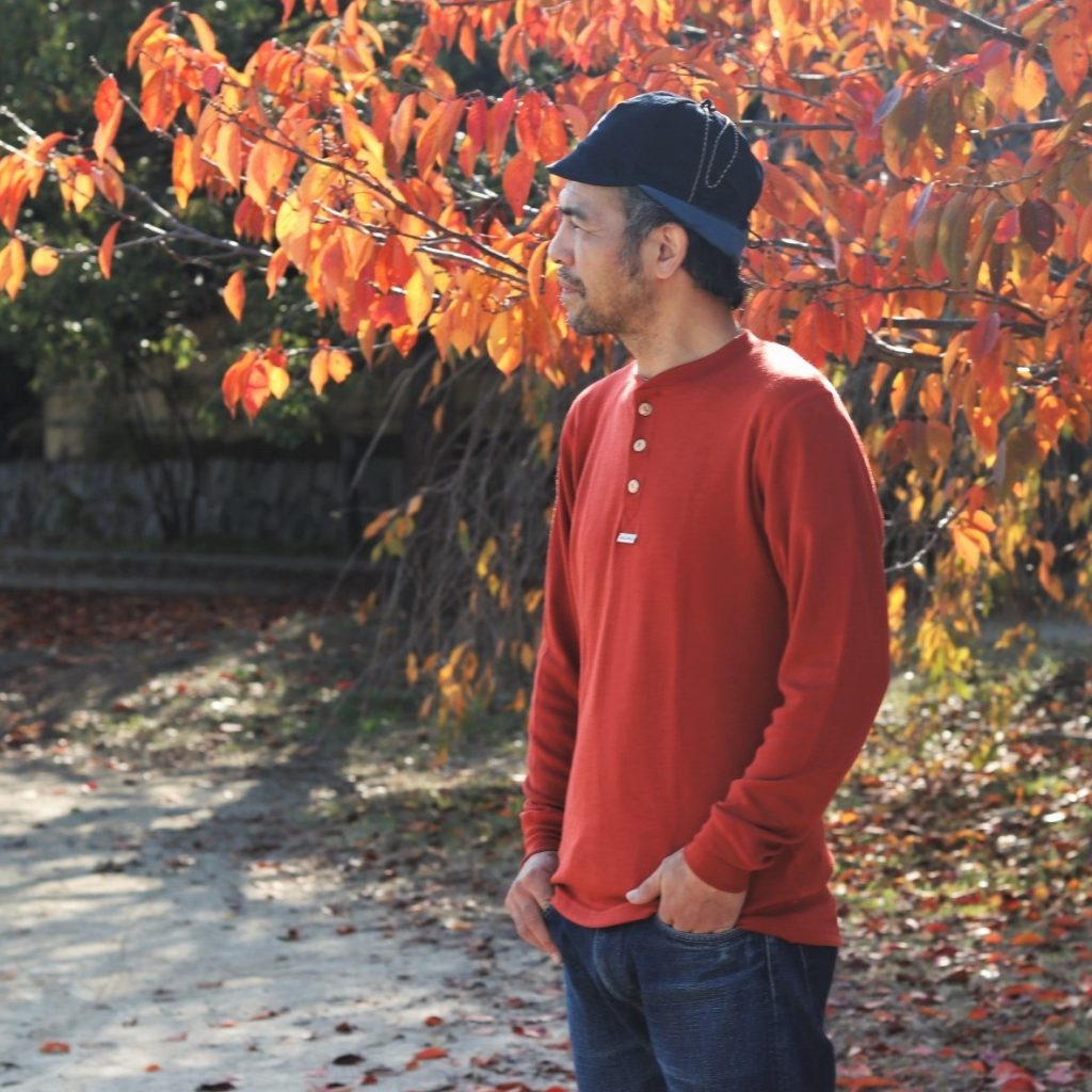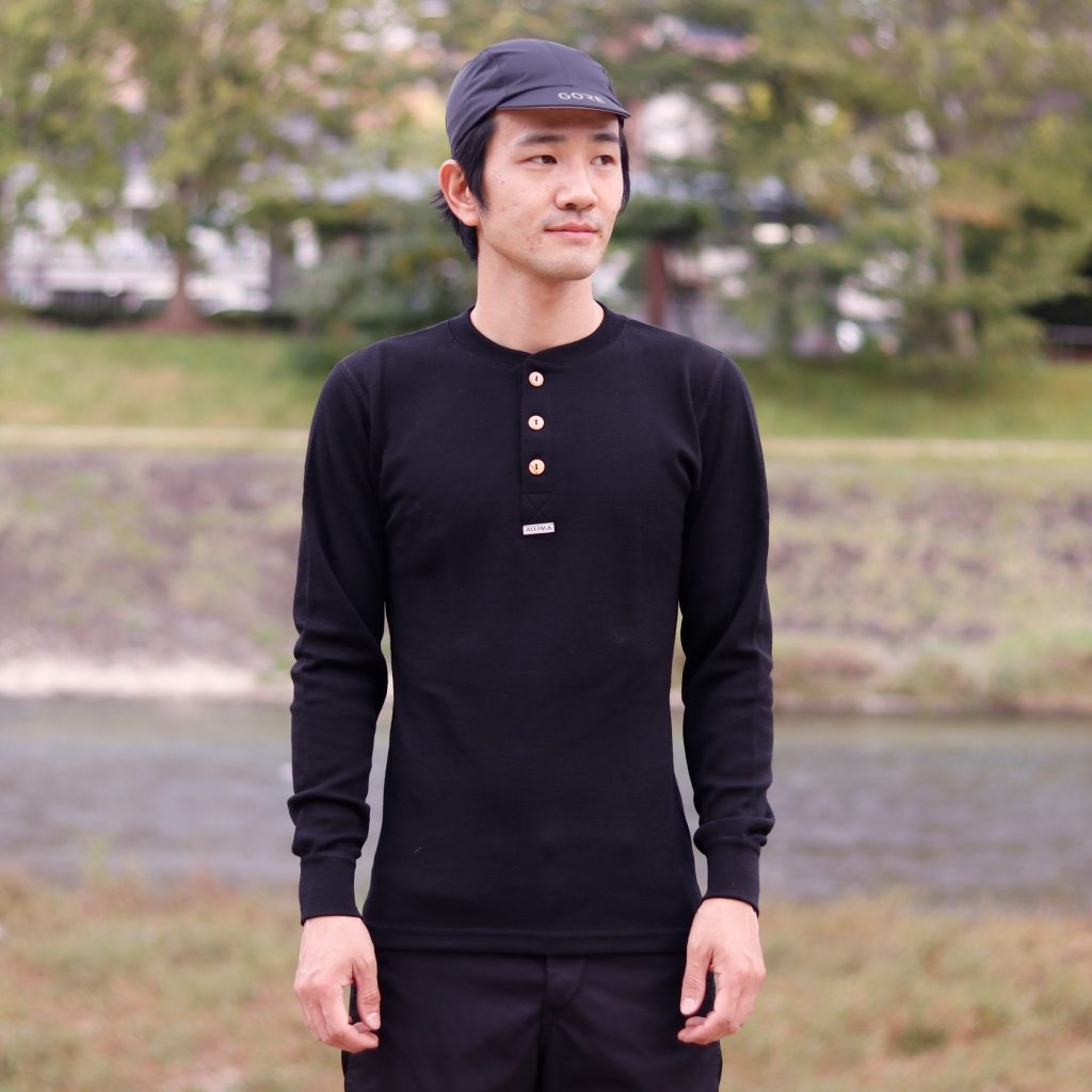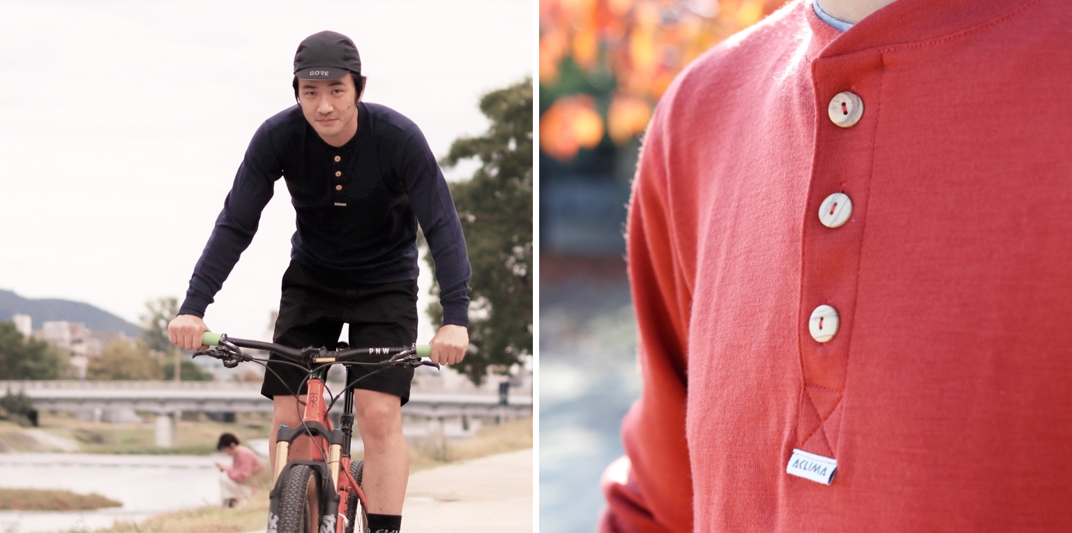 当店定番のACLIMAラインナップ中 最も人気の高い、木製ボタンの雰囲気も◎ なヘンリーネックモデル。