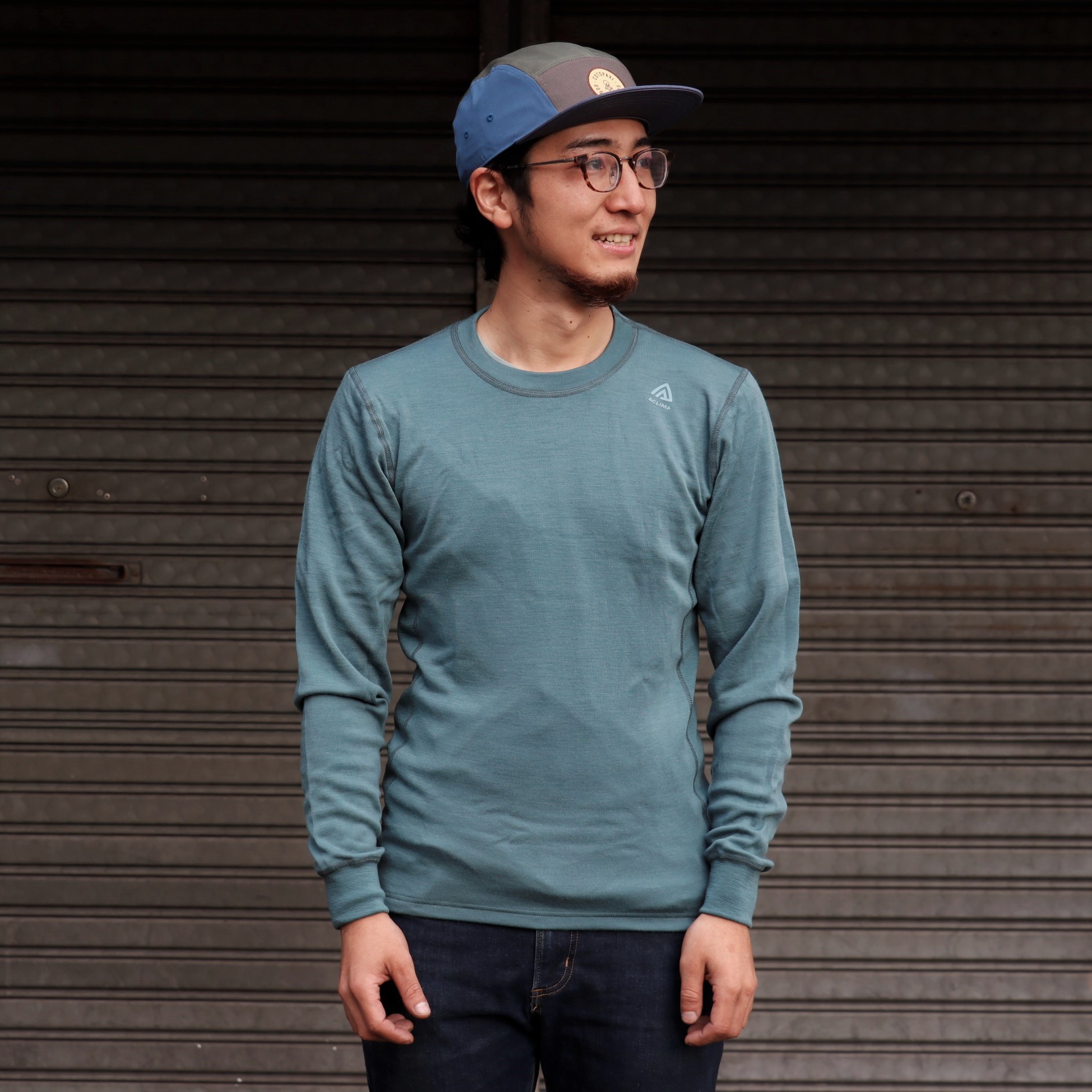程よい肉厚さで、ACLIMAラインナップの中で中間の保温性となるWARMWOOLラインは秋にはアウターとして、冬にはインナーとして最も使いまわしやすい暖かさ。