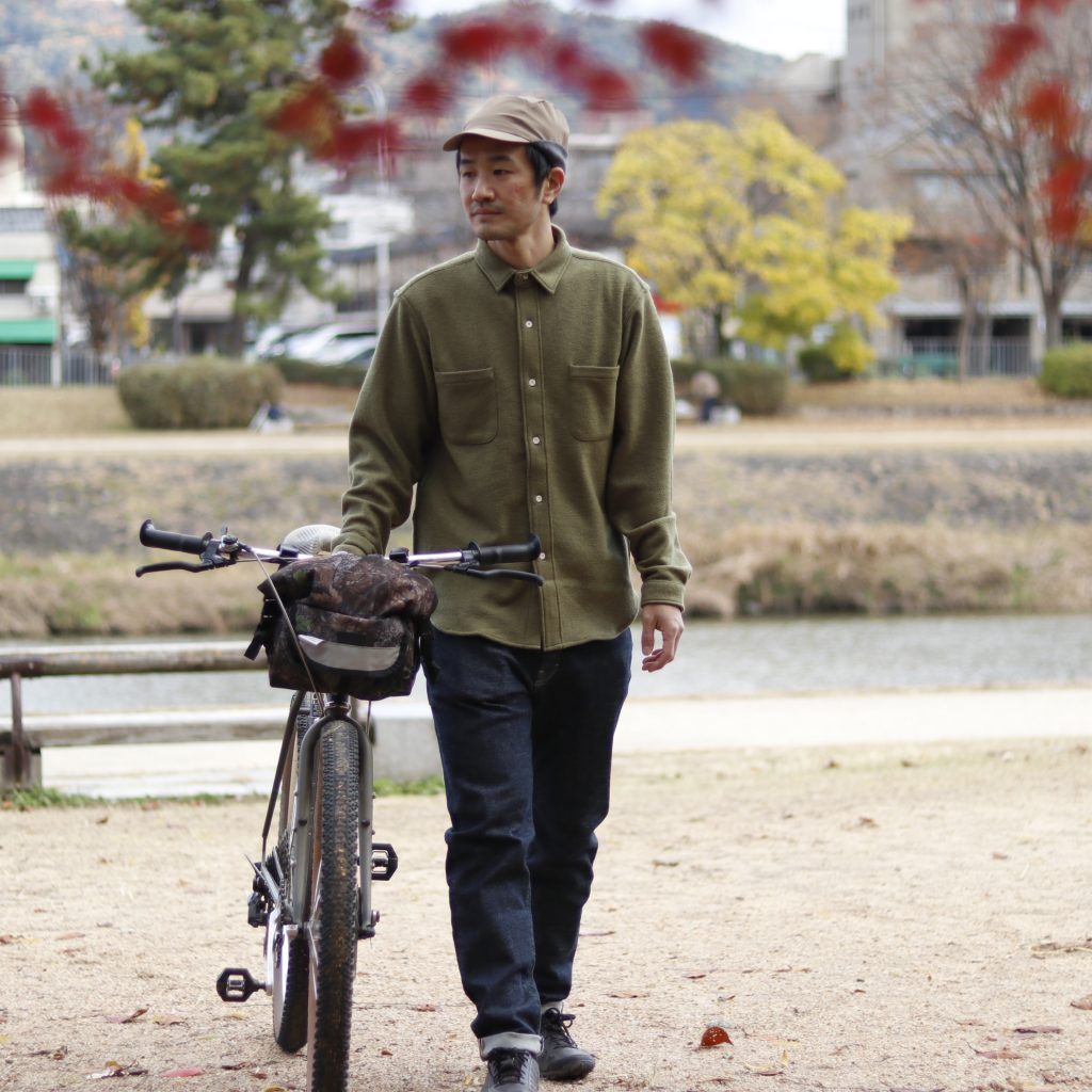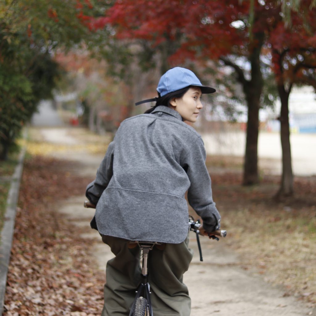 一見するとシンプルなウールシャツの様でありながら、動かしやすい袖周りの作り/自転車に乗っていてもスタイルの崩れないサイドのスリット等の要素が詰め込まれています。