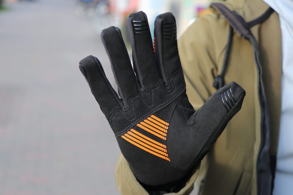 実は秋冬のハイキングをメインとしたグローブですが、手の甲側のストレッチ性能が高く動きやすいので自転車にも好相性ということでセレクトしています。