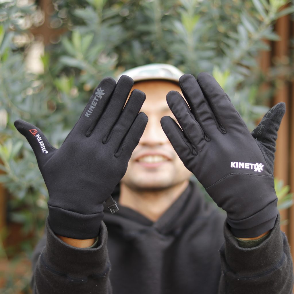 手の甲側は防風のPolartec WindbloシェルにDWR耐久性撥水加工済なので多少の雨でも安心。風を通さないだけで体感気温は大きく上昇します。