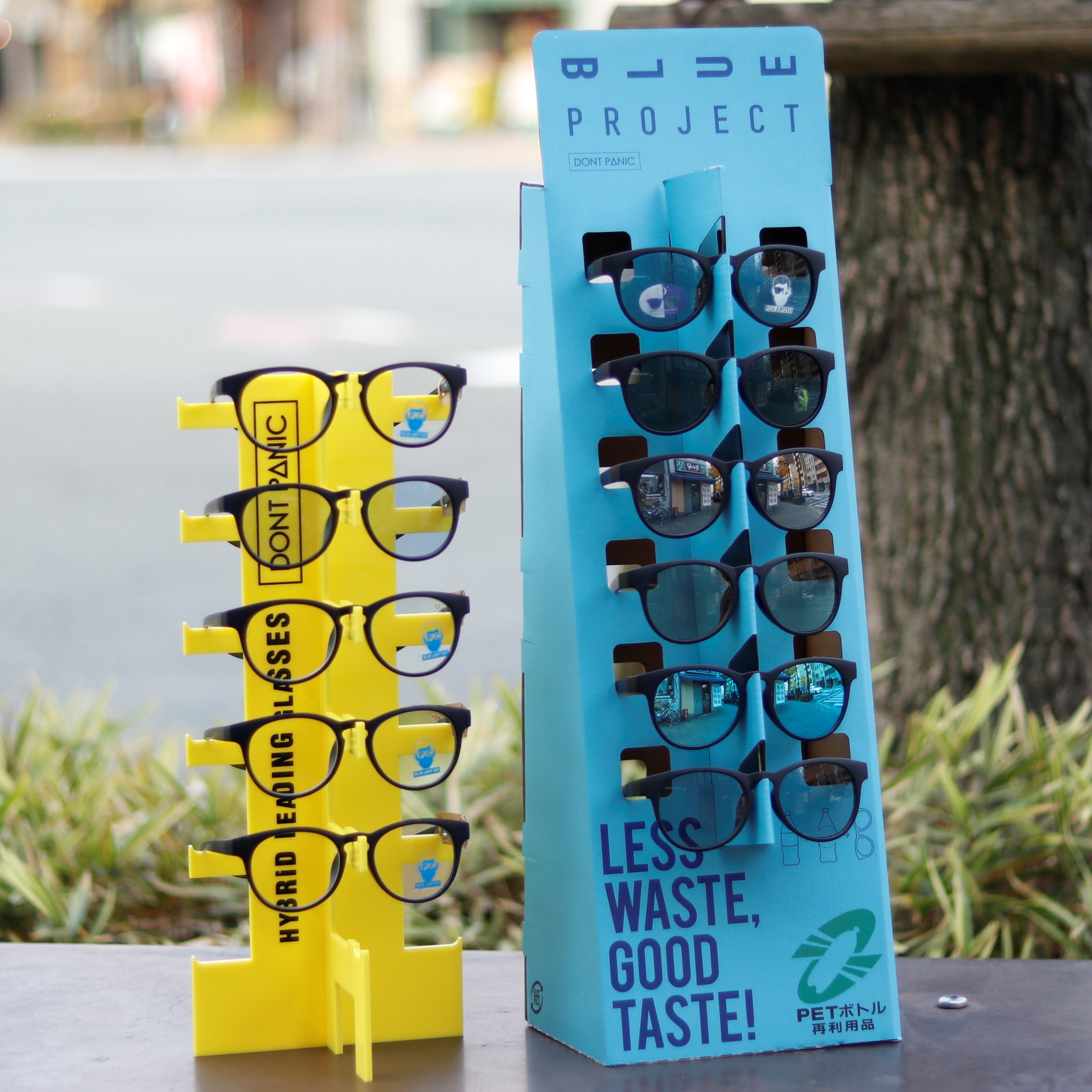 拾っても拾っても無くならないペットボトルごみ。このプラごみ問題の解決に寄与すべく、「LESS WASTE, GOOD TASTE!(無駄を減らしてご機嫌に)」というスローガンを掲げ、回収された廃棄前のペットボトルをリーディンググラスやサングラスなどのアイウェアとして有効利用するリサイクルプロジェクト「BLUE PROJECT(ブループロジェクト)」に着手。この「BLUE PROJECT」を通じて美しい海の実現を目指していきます。