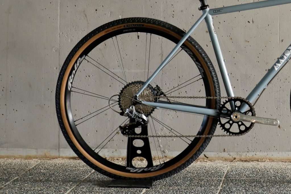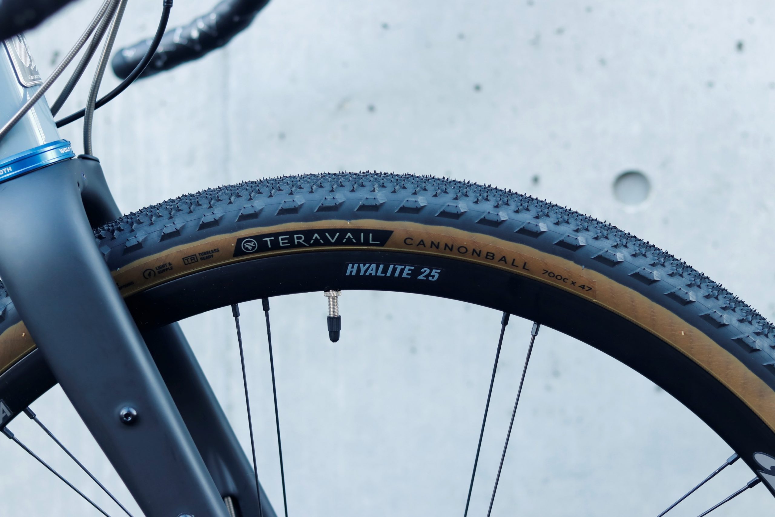 タイヤには、今回最初からチューブレス仕様をご希望という事で、ビード上がりもよくエア漏れのし難さにも定評あるTERAVAIL製より グラベルライドにジャストコミットするCannonball 700×47C、軽量タイプのLight&Suppleをチョイス。