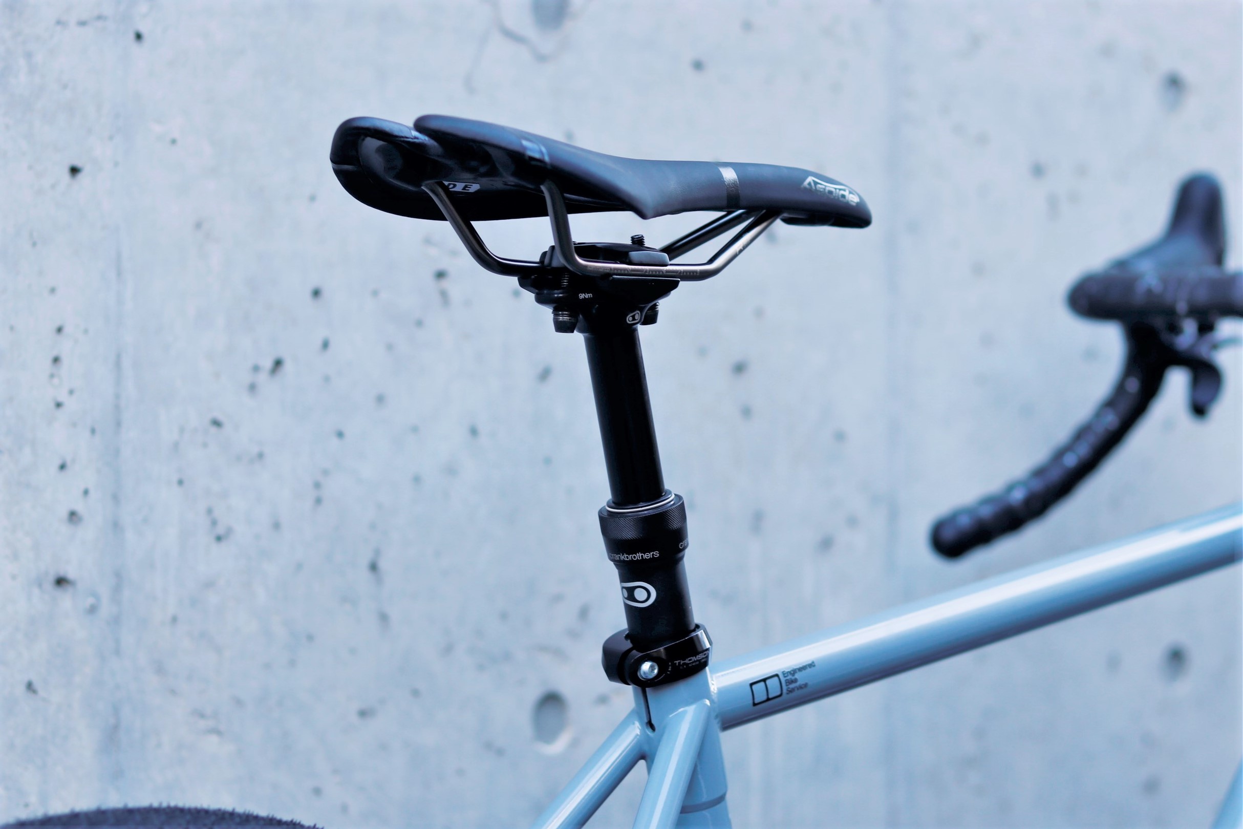 MTBに比べ前傾姿勢を伴うドロップハンドル車における林道の下りには心強いドロッパーシートポストには、27.2mm径&60mmストロークとグラベルバイクと相性の良いCRANKBROTHERS HIGHLINE XCを。