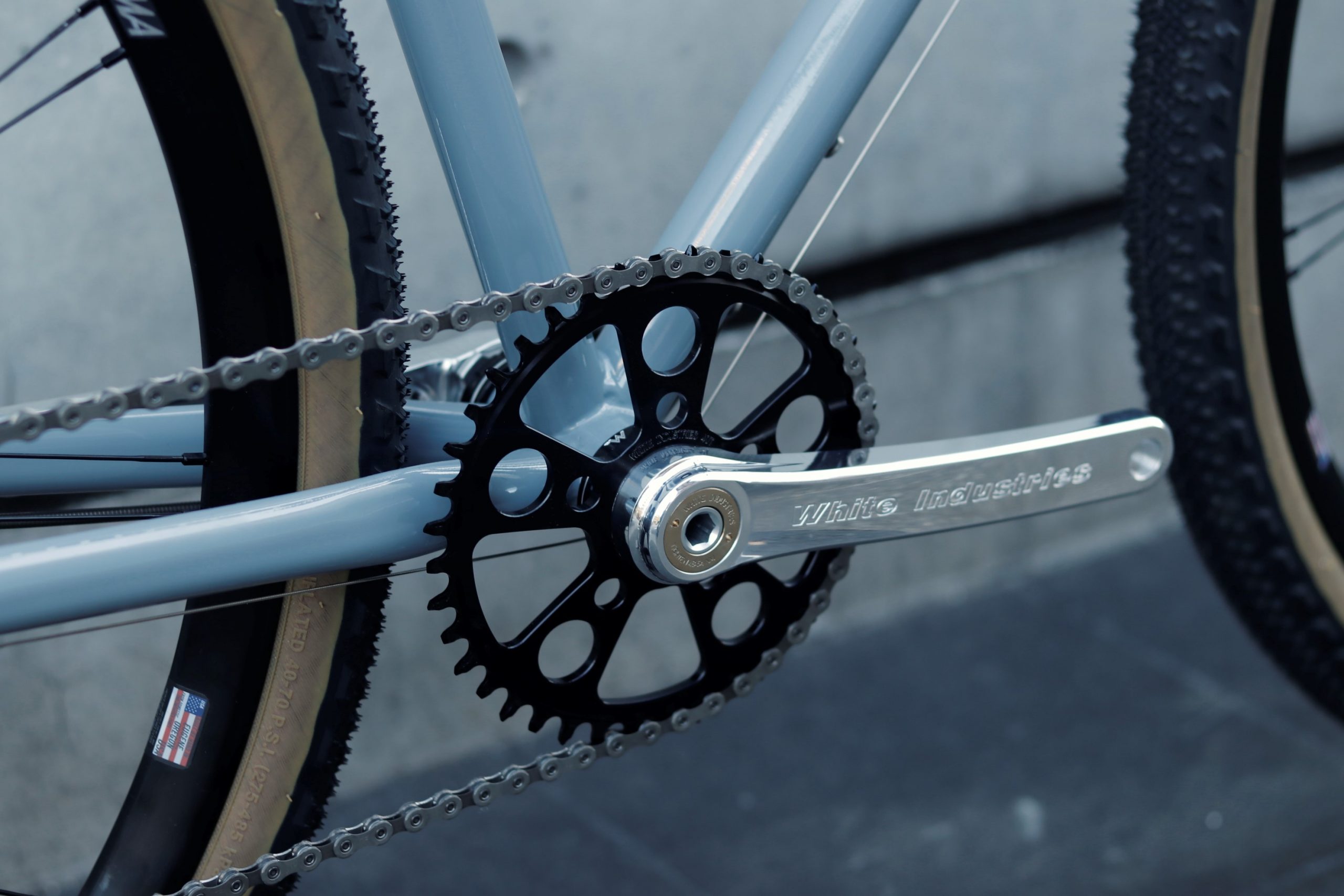 クランクには名作WHITE INDUSTRIES G30 & TSR 40Tチェーンリングをセット。洗練されたデザイン性~made in USAに拘り続けるアルミ削り出し/CNC加工による仕上げの美しさ。コスパ/数字/機能性のみの視点では理解出来かねるものでありましょう。