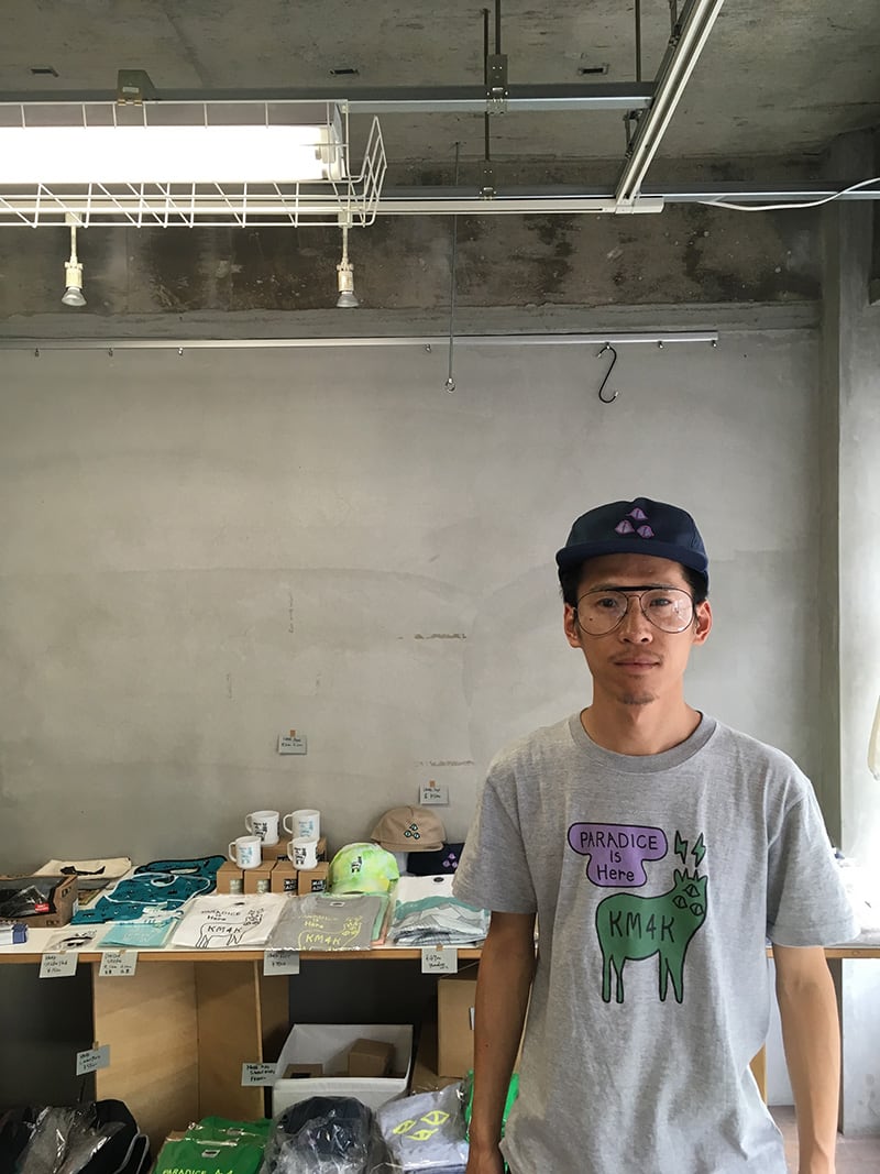 ロゴの左上の「PARADICE IS HERE」はブランドのスローガン的な言葉。人がそれぞれ持っている「最高の瞬間=パラダイス」をKM4Kと一緒に、という気持ちが込められています。