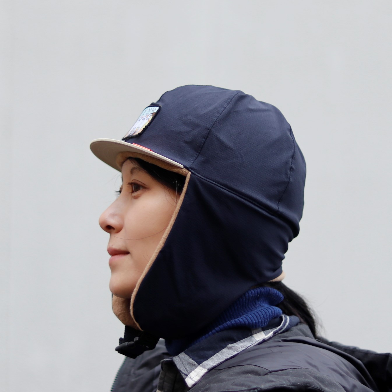 サイクリングキャップでも耳当て付きの物はありますが、そこはKM4K。しっかり大きな耳当てで抜群に暖かそうですね。