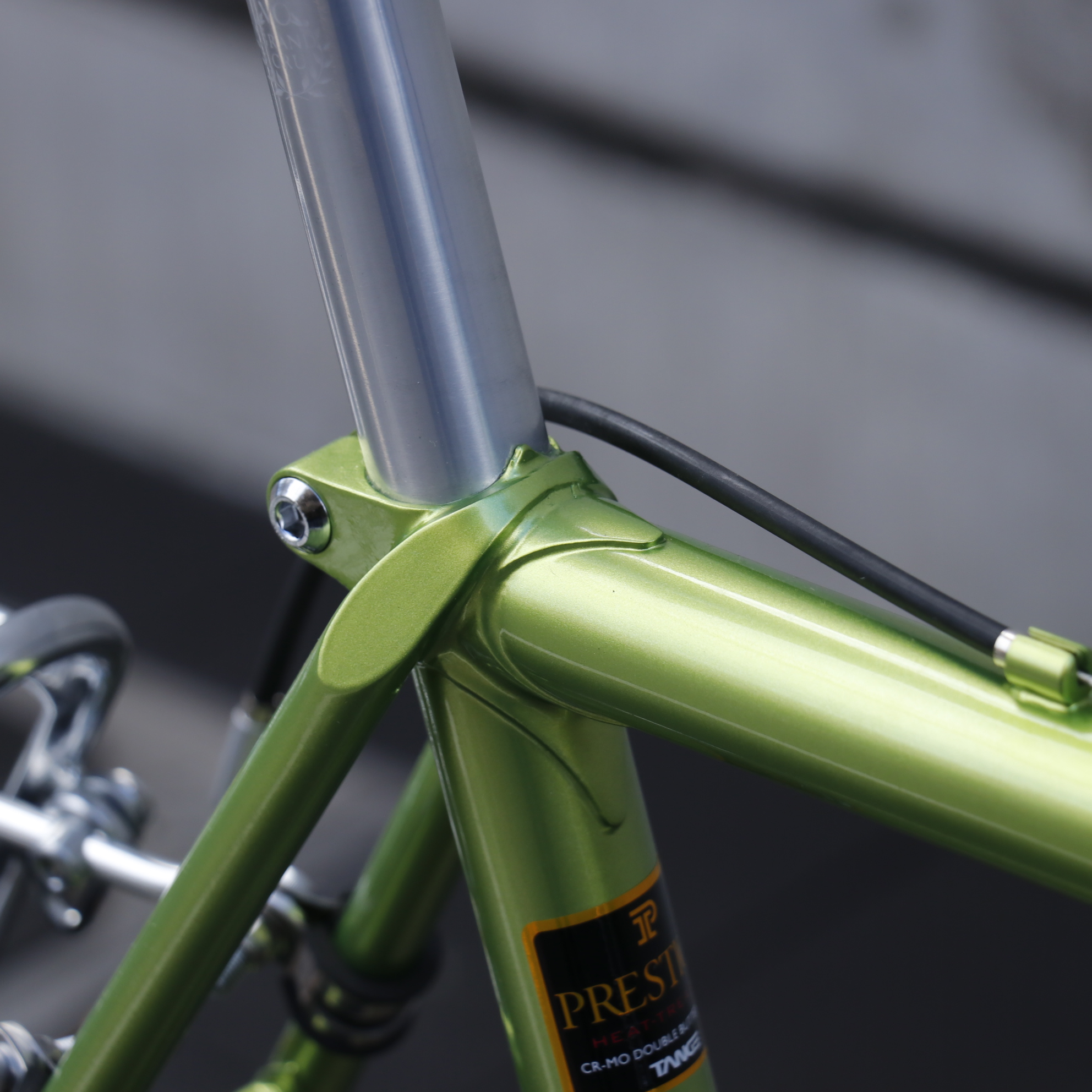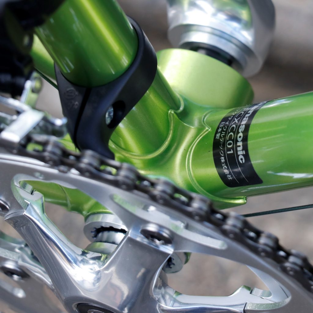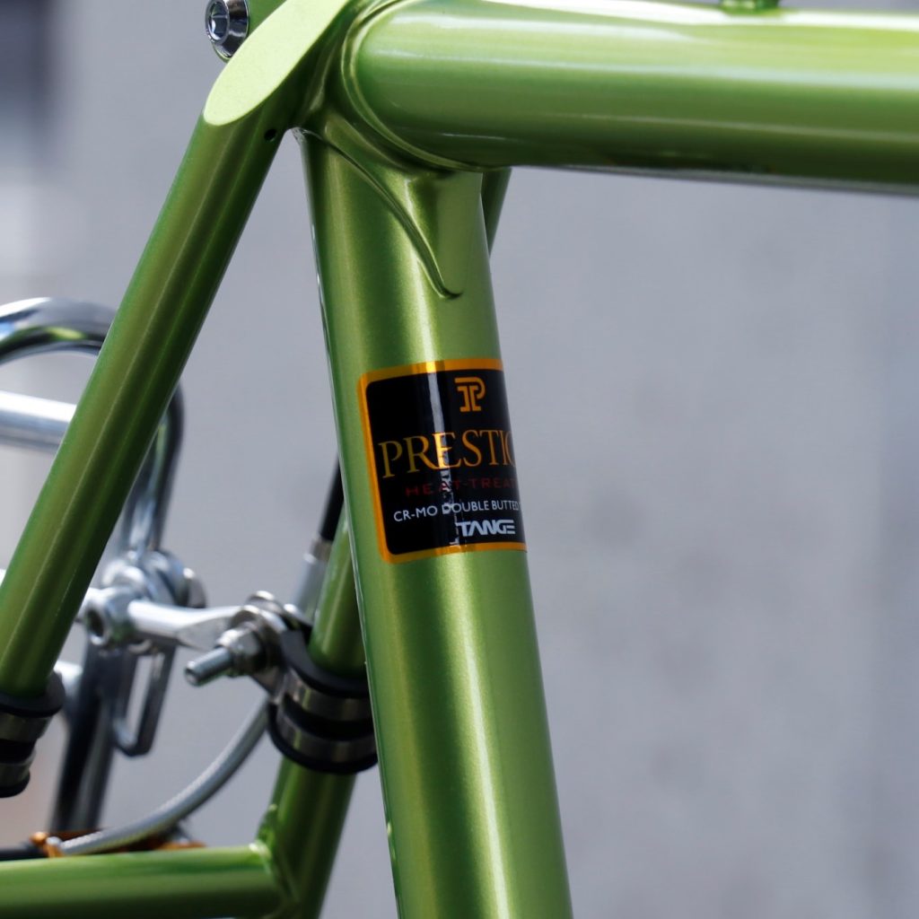 パイプには、程よい剛性感に加えしなやかさも併せ持ち、芯のある絶妙なバネ感で踏めば踏むほど前に進む印象を持つ、90年代世界中を席巻した名パイプ「TANGE PRESTIGE」を採用。90年代、ヨーロッパプロチームによるマシン供給よりパリ~ルーベやツール・ド・フランスといった欧州トップレースでの信頼と勝利から見いだした、素材の強度変化起こしにくい理想の溶接温度650℃の低温ロー付けで製造されます。