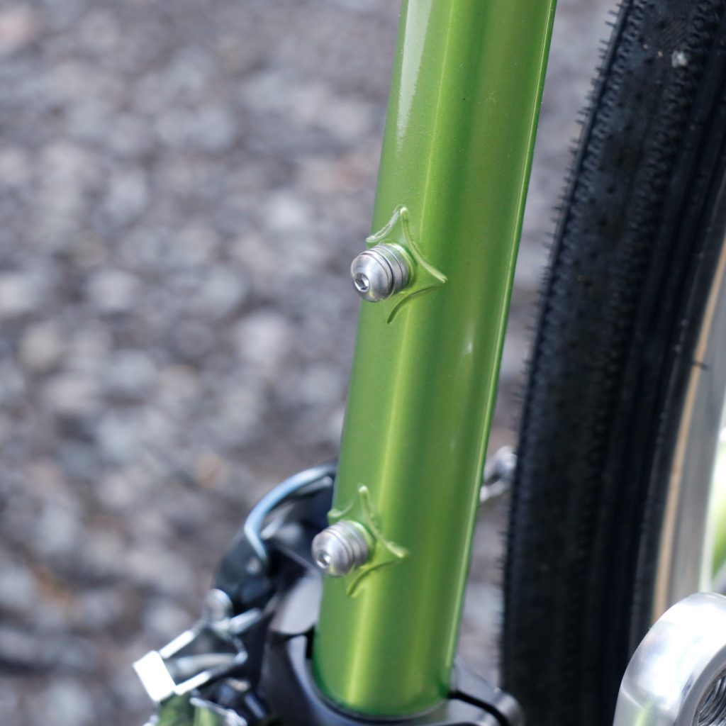 クラシカルな雰囲気のクローズドシートステー(1本巻きタイプ)は、少しでも泥詰まりを抑止すると共に、集合ステーと比べて約12%の剛性UPを可能としております。