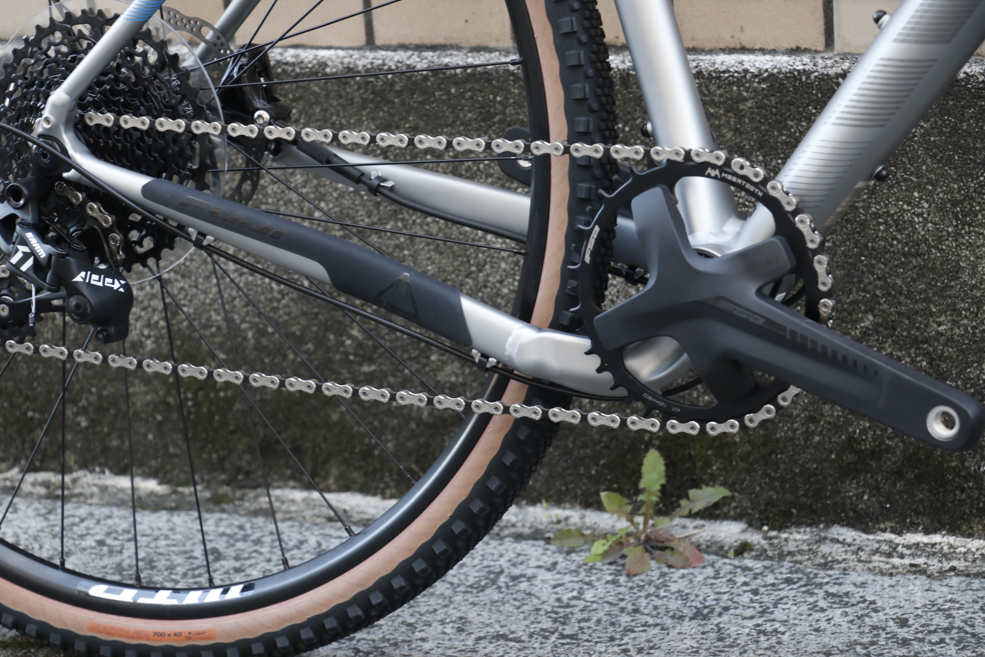 高い工作技術が要されるこだわりのフレームワークとフルカーボンフォーク、SRAM APEX1油圧コンポと合わさって、非常に満足度高い一台。