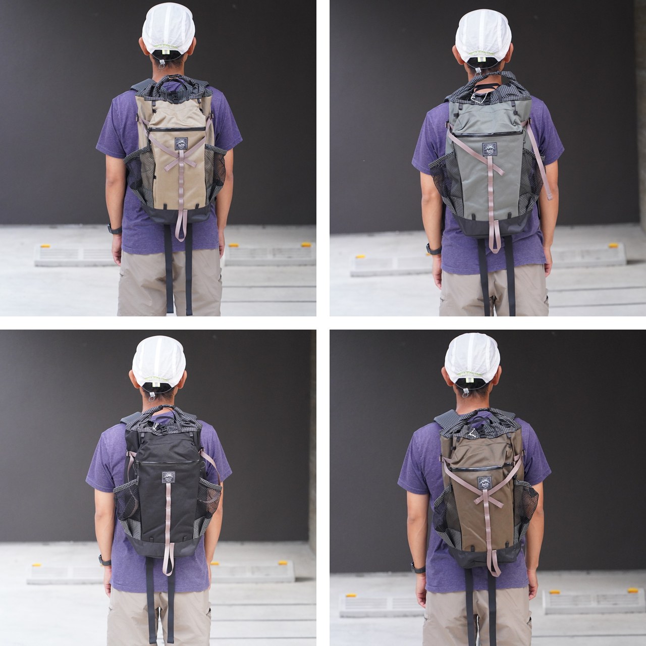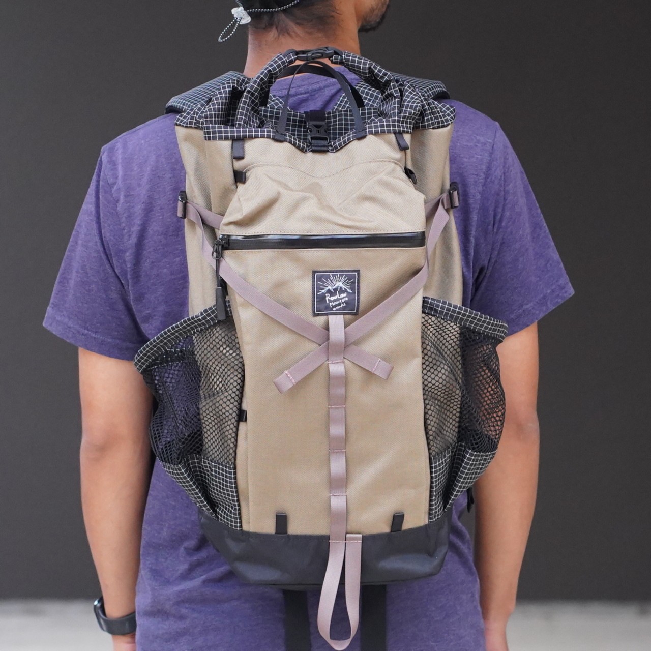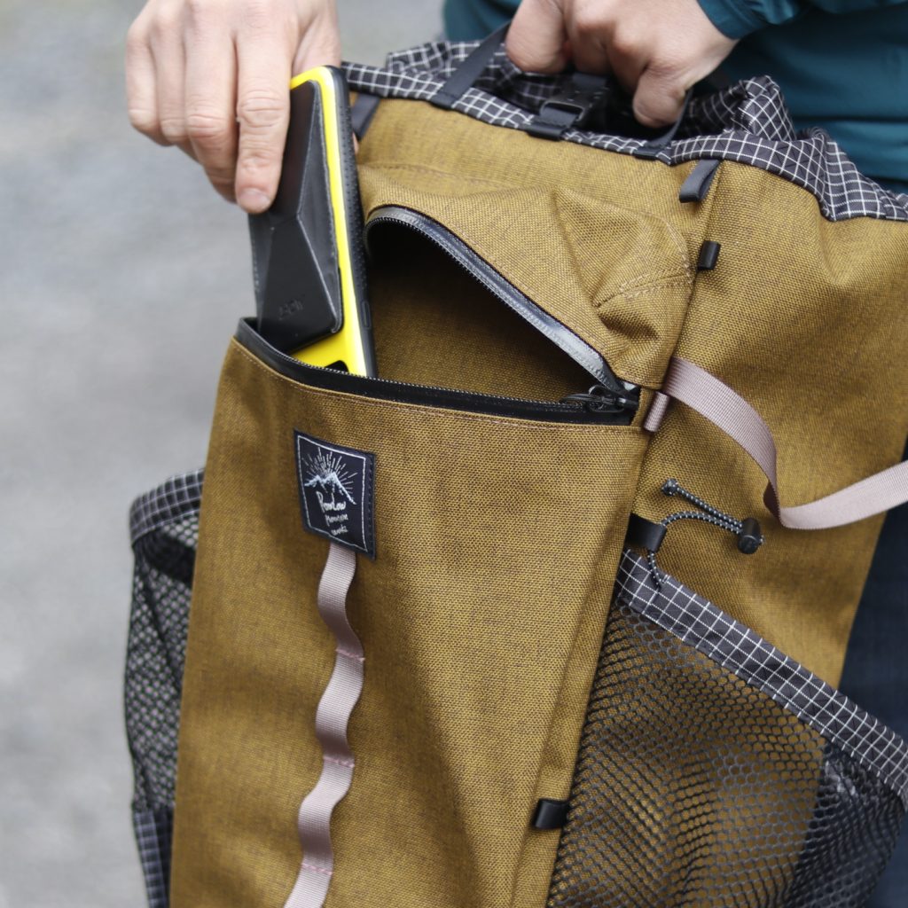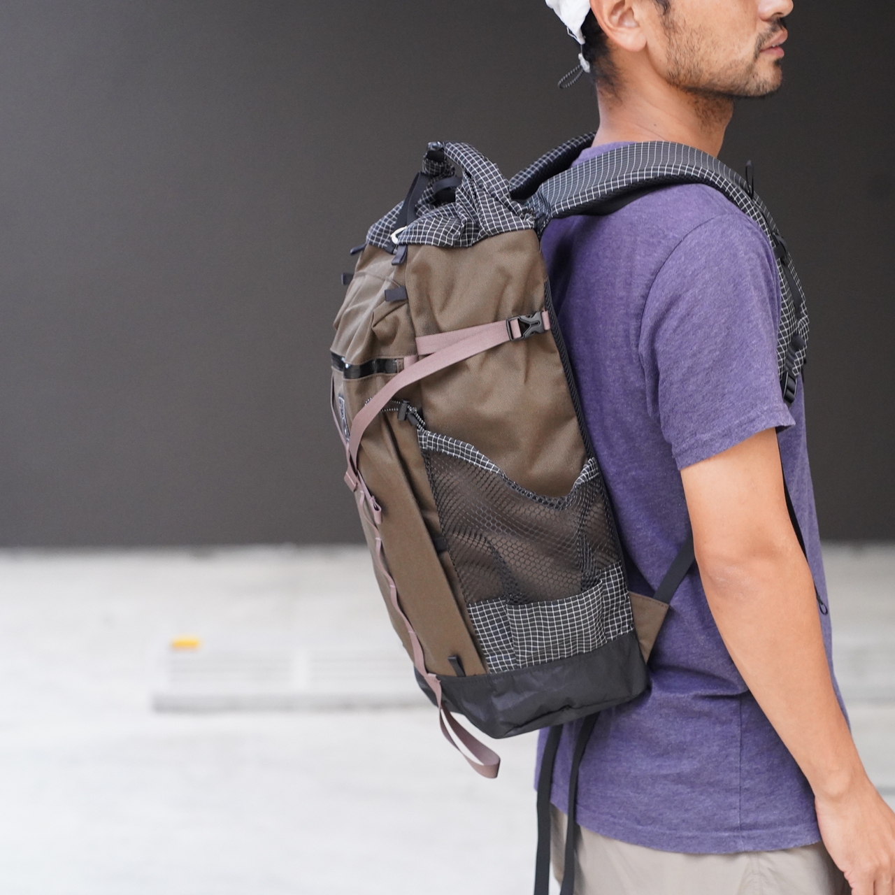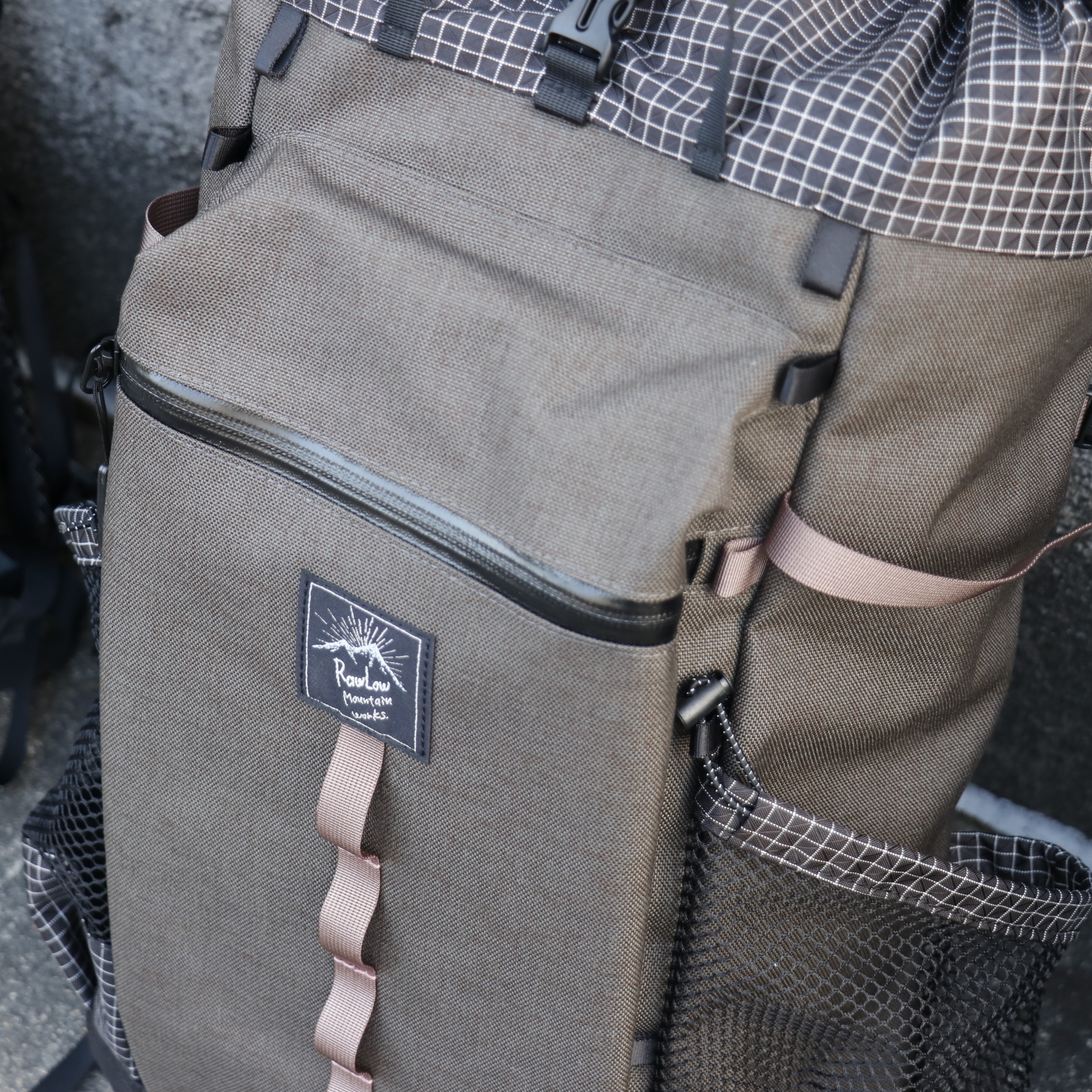 ポケットの底やロールトップ部など、柔軟性と強度の両立が必要な箇所には格子柄が目印のダイニーマX gridstopを、地面に接するボトムには引き裂き強度と防水性の高いX-PAC-VX21を使用。