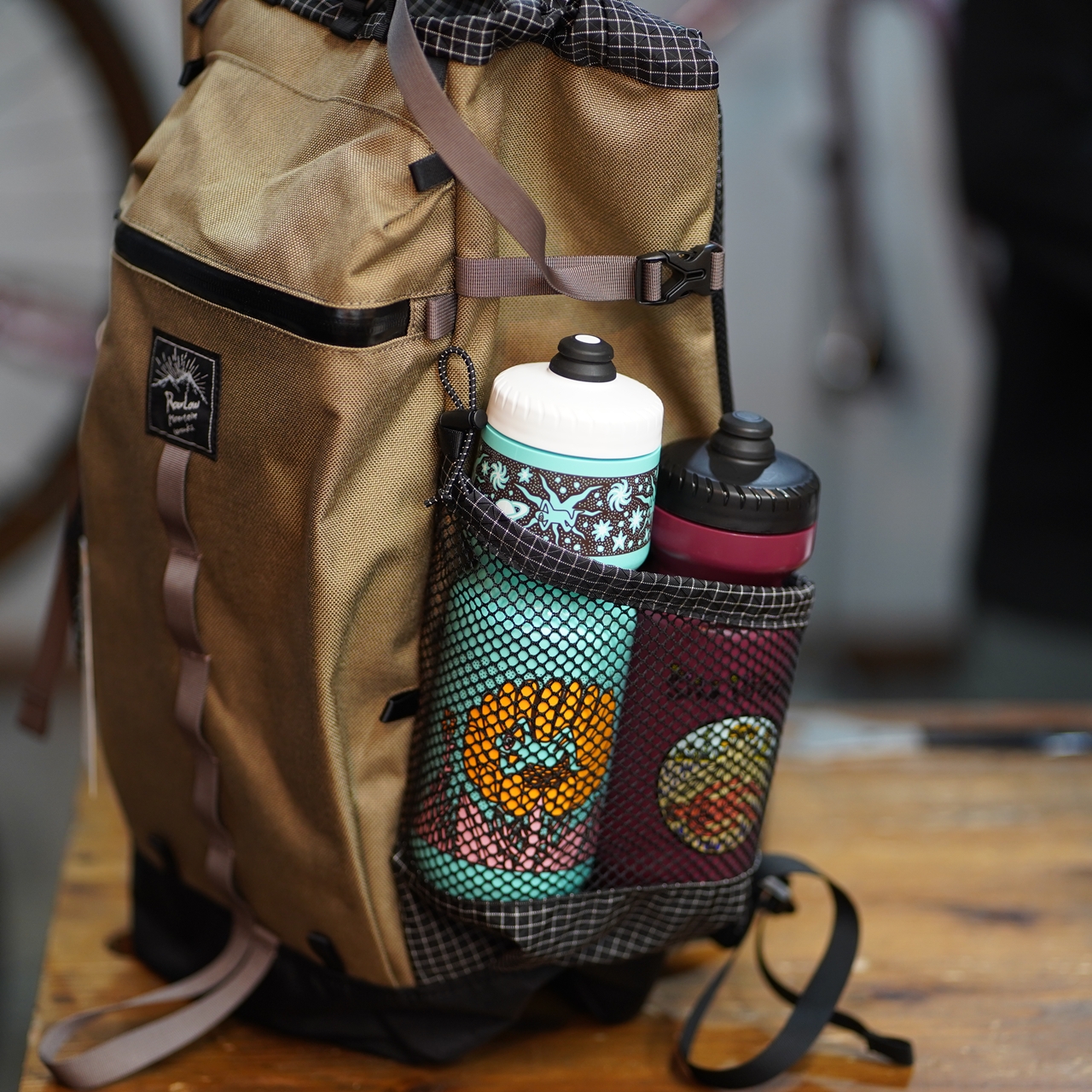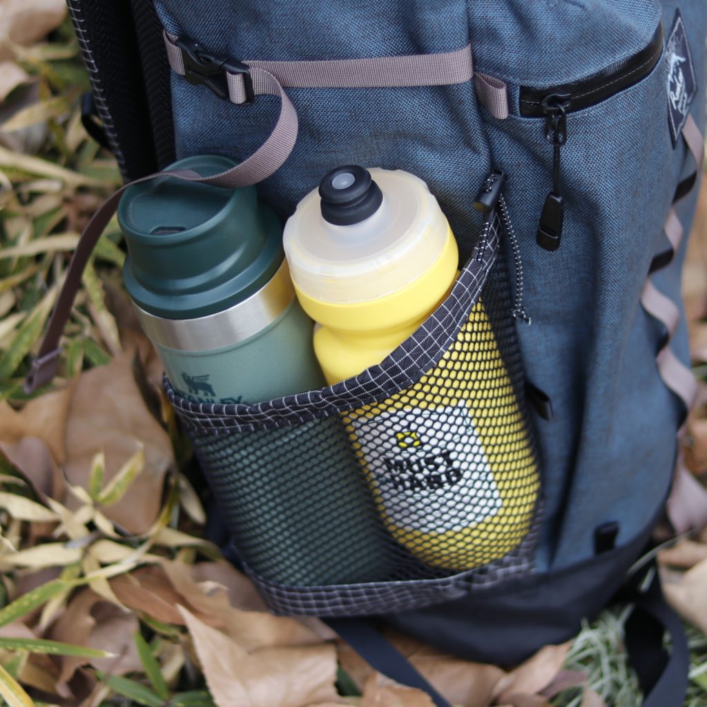 サイドポケットが大きくてボトルが2本入っちゃいます。