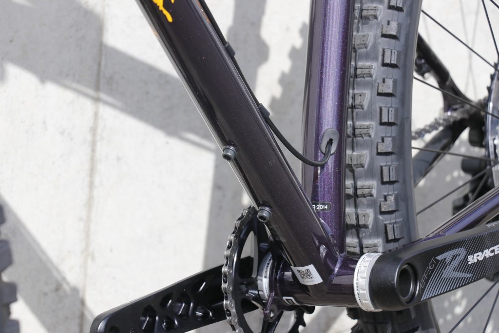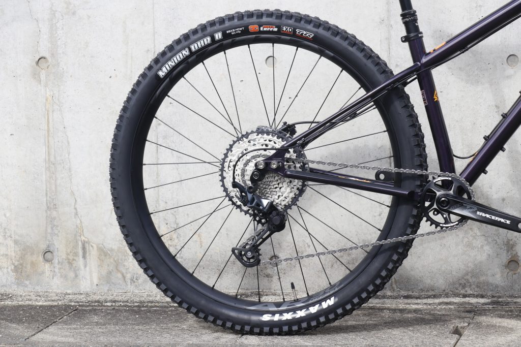 そして77.5°まで立てたシートチューブにより、29×2.4のタイヤを飲み込むクリアランスと最短417mmというロードバイクの様なリアセンターの短さを実現。