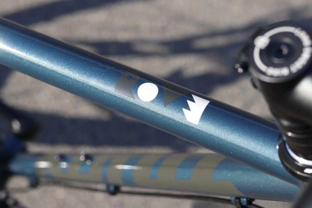 トップチューブの上、跨る度に&走っている時いつでも見えるこの位置には遊び心満点のモデルネーム。