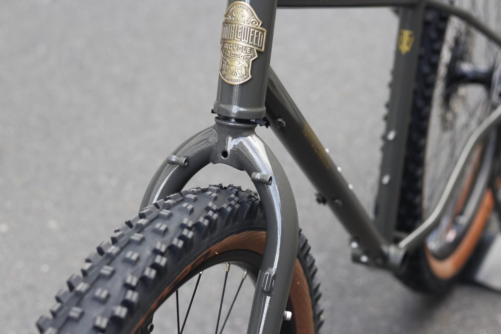 長めのリアセンターに小さなBB DROPという珍しいジオメトリがTumbleweed独特の世界観。
